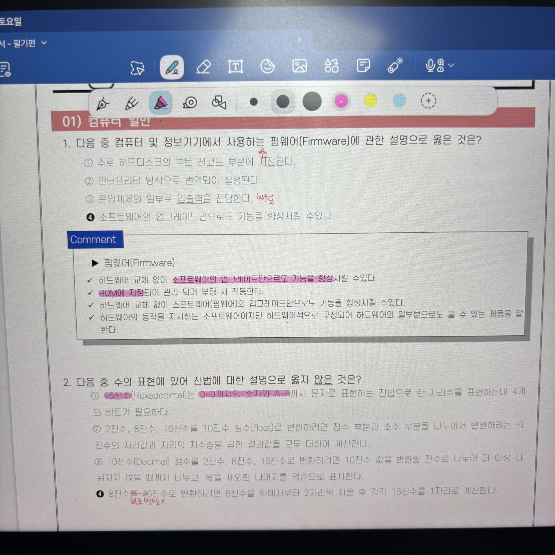 특히 액세스는 처음 들어서 처음에 따라가기 너무 힘든 거에요. 그래서 교재를 하나는 필기 있는 버전, 하나는 필기 없는 버전으로 해서 처음에 할 때는 필기 마구마구해서 밖에서도 쉽게 볼 수 있게 메모를 했구요. 하나는 필기 없는 버전으로 해서 실전처럼 연습할 때 패드 세로로 세운 후에 시험장처럼 연습했습니다!