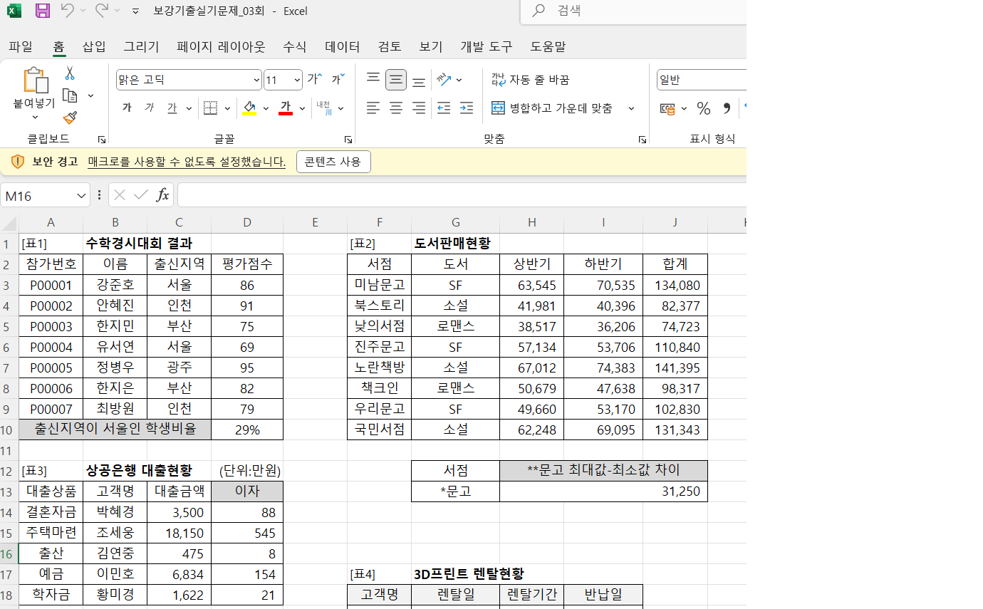 나머지 문제는 강사님이 너무나 잘 정리를 해주셔서 시험볼때는 오히려 시간이 남아서 다시한번 검토할수 있는 시간도 있더라구요