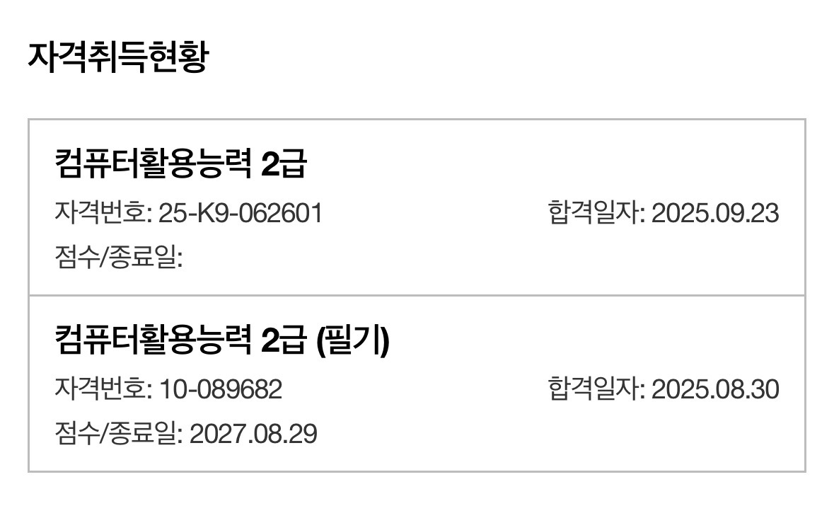 - 응시 횟수: 필기 2회, 실기 3회