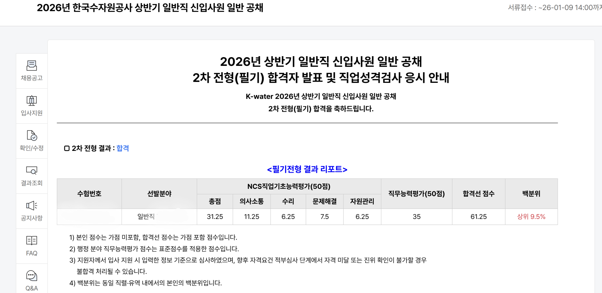 안녕하세요. 이번 한국수자원공사 상반기 채용에서 최종 합격의 기쁨을 누리게 된 합격생입니다.