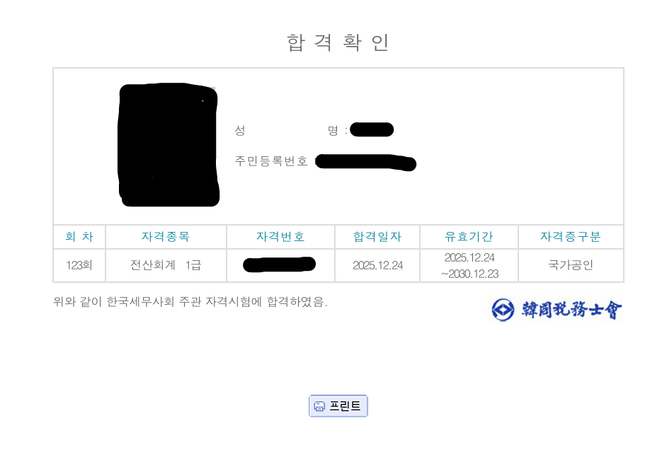 이번 123회 전산회계 1급 시험에 당당히 합격하여 이렇게 후기를 남기게 되었습니다.