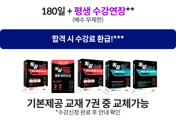 · 시험 최종 합격 시 프리패스 실 결제 금액에서 제세공과금을 공제 하지 않으며, 교재 혜택, PG사 수수료 제외 후 환불 처리 해드립니다.