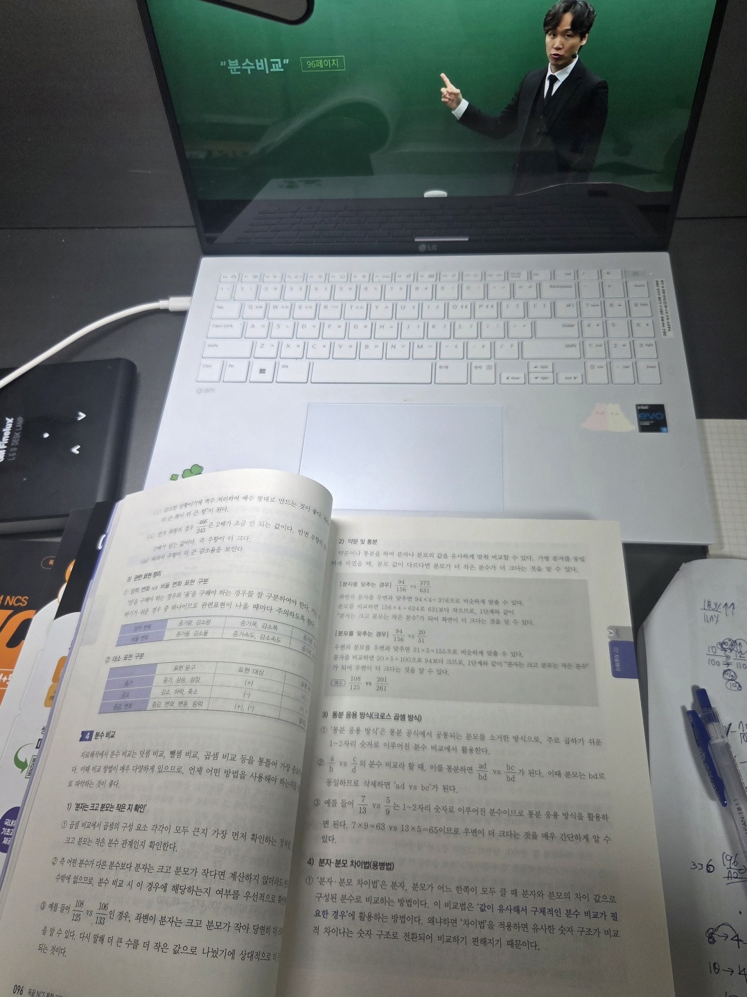NCS는 단순히 문제를 많이 푸는 것이 아니라 유형별 풀이법을 익혀 시간을 단축하는 것이 중요하다고 들었는데, 강의를 통해 그 의미를 확실히 이해하게 되었습니다. 의사소통 영역에서는 강사님께서 속독법과 문맥을 이해하는 방법을 알려주셨고, 자료해석 영역에서는 자주 등장하는 비율과 필수 암기 사항을 자세히 설명해 주셨습니다.