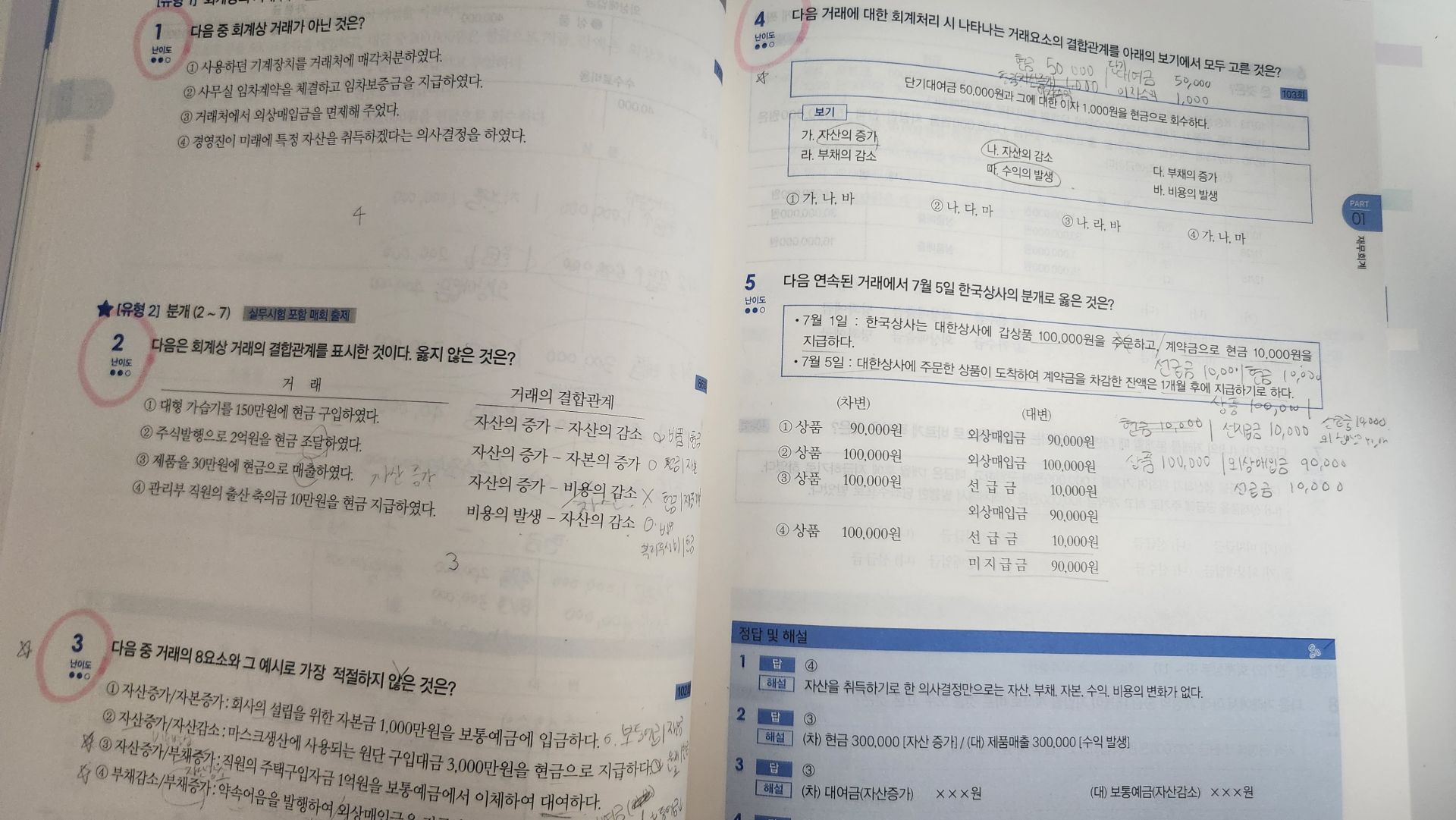 사실 시간 없어서 책에 있는 기출 5회랑 올해 기출 3회만 푸는데도 벅찼습니다⋯ 그래도 최신 기출 3회분은 최소 3회독~ 어려운 문제는 계속해서 보면서 눈에 바르려고 노력했어요! 그렇게 실전 문제 감 쌓고 시험 전날 밤에 박진혁 선생님이 제공해주시는 빈출분개 TOP100 풀었어요..! 시험 시작 전까지 빈출 분개 자꾸 틀리는 것만 모아서 봤답니다.. 봐도 봐도 헷갈리는 것들 위주로요! 그럼 시험장 가서 헷갈릴 망정 모르는 분개는 없어요 ^ ^