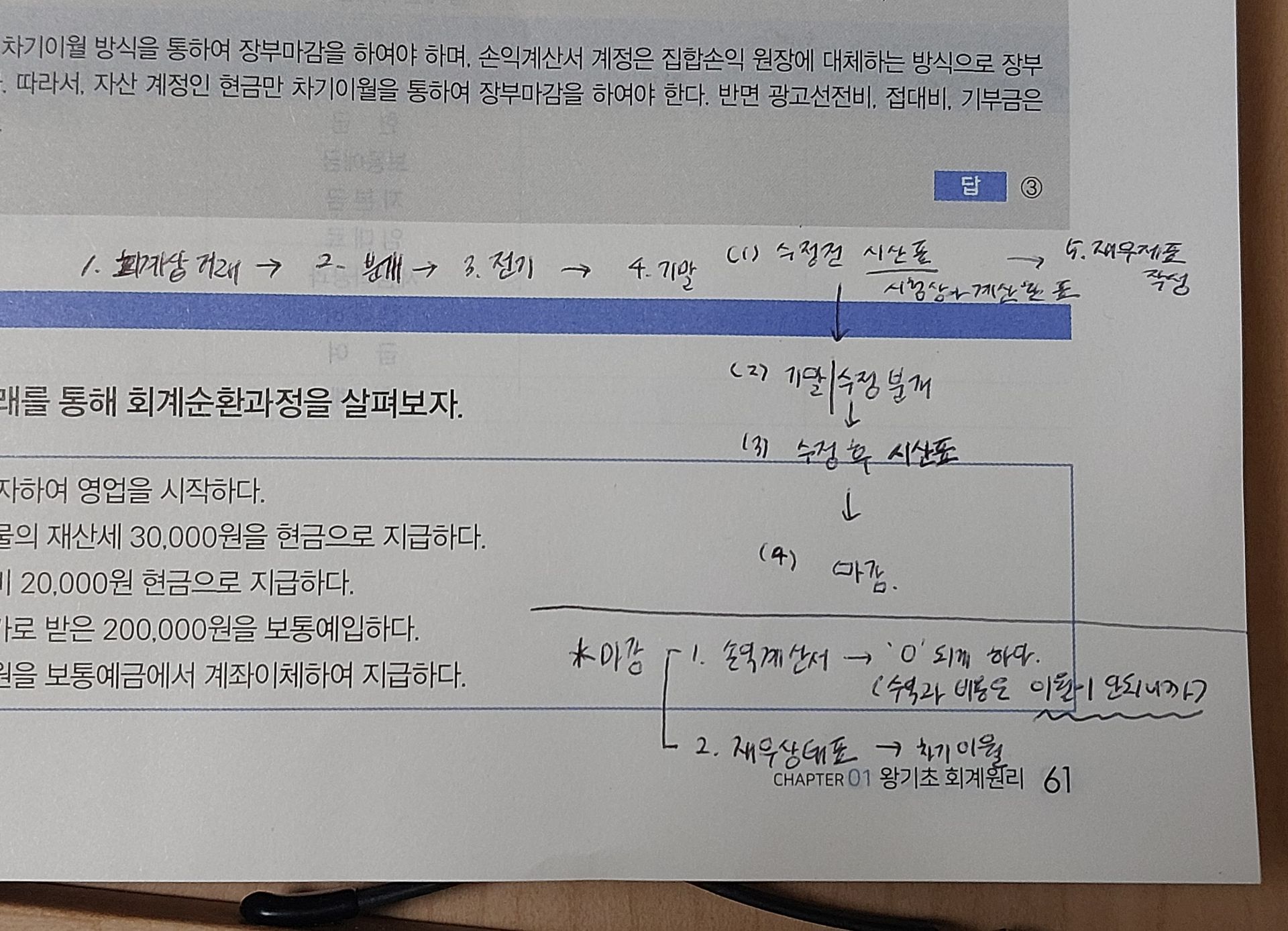 시험을 얼마 앞두고, 자료도 같이 보면서 분개, 기츨 모두 같이