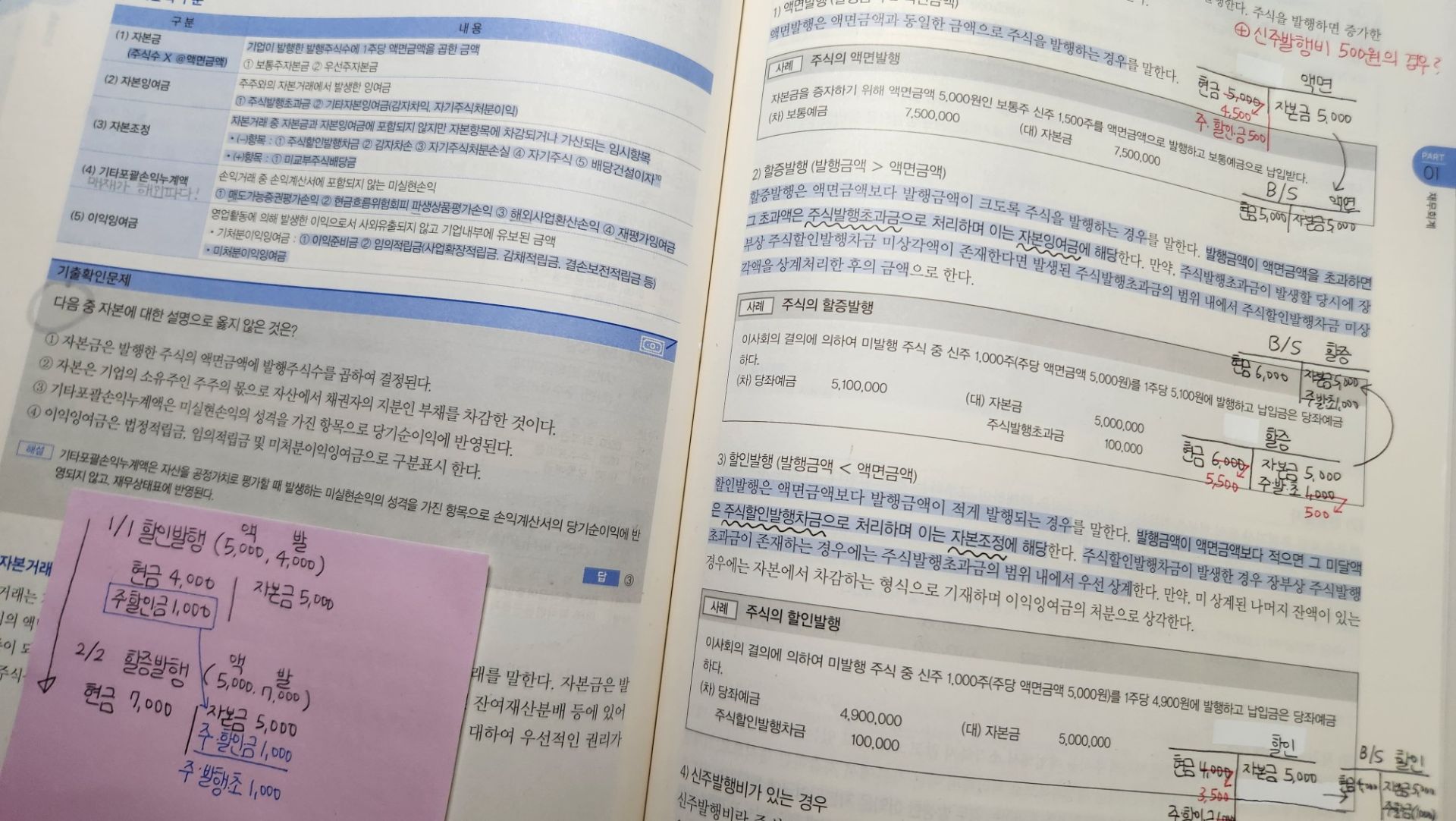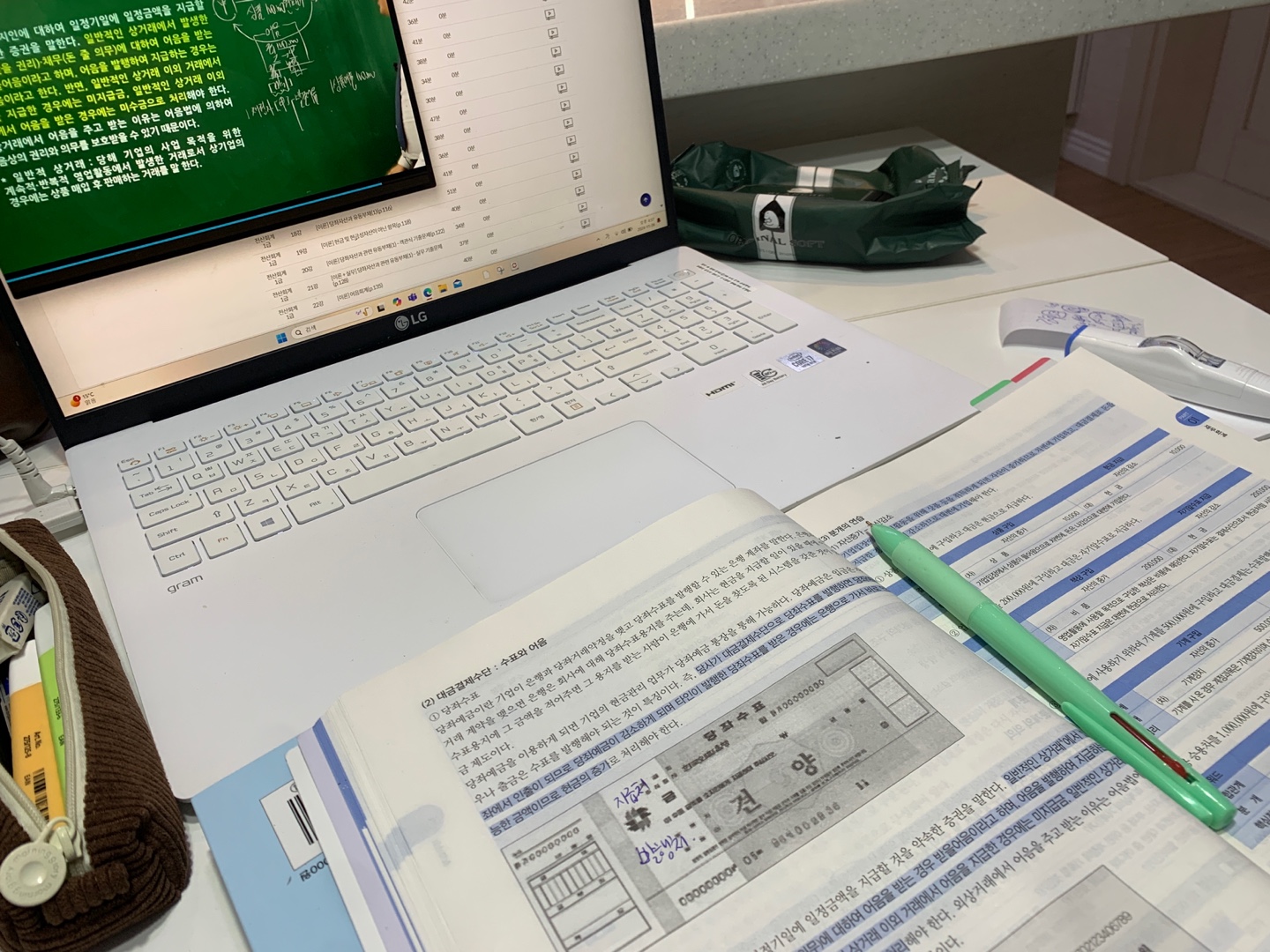 사실 시간 없어서 책에 있는 기출 5회랑 올해 기출 3회만 푸는데도 벅찼습니다⋯ 그래도 최신 기출 3회분은 최소 3회독~ 어려운 문제는 계속해서 보면서 눈에 바르려고 노력했어요! 그렇게 실전 문제 감 쌓고 시험 전날 밤에 박진혁 선생님이 제공해주시는 빈출분개 TOP100 풀었어요..! 시험 시작 전까지 빈출 분개 자꾸 틀리는 것만 모아서 봤답니다.. 봐도 봐도 헷갈리는 것들 위주로요! 그럼 시험장 가서 헷갈릴 망정 모르는 분개는 없어요 ^ ^
