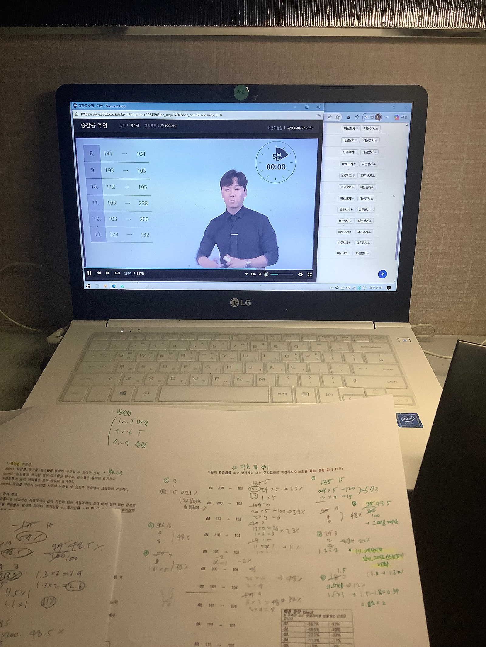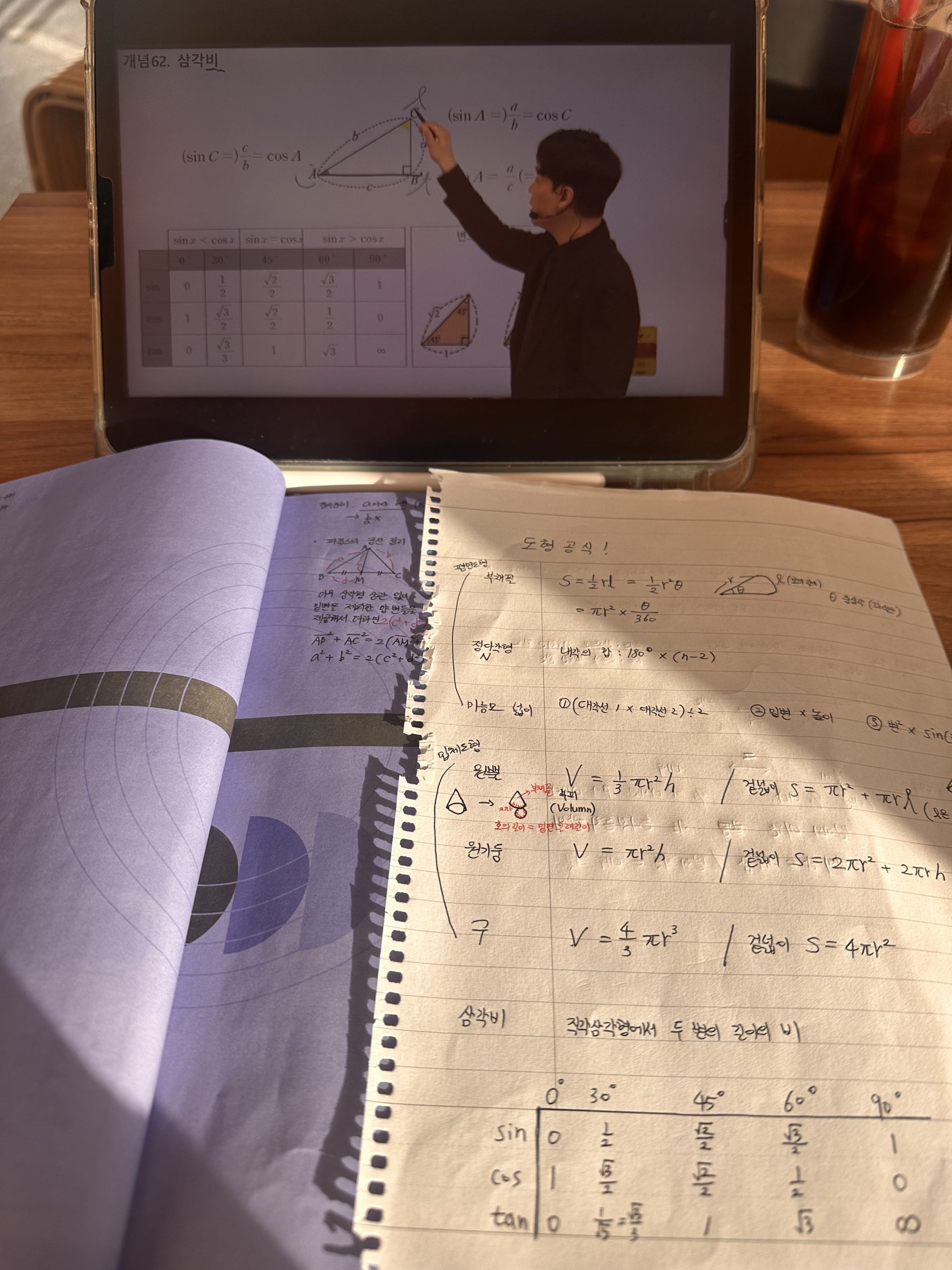 물론 강의를 듣는 것만으로 끝나는 것이 아니라 복습과 기본 공식·개념 암기는 스스로 꾸준히 해야 한다는 점도 다시 한번 느꼈습니다. 강의가 방향을 잡아주는 역할이라면, 반복 연습은 결국 제 몫이라는 생각으로 복습 루틴도 함께 만들고 있습니다.