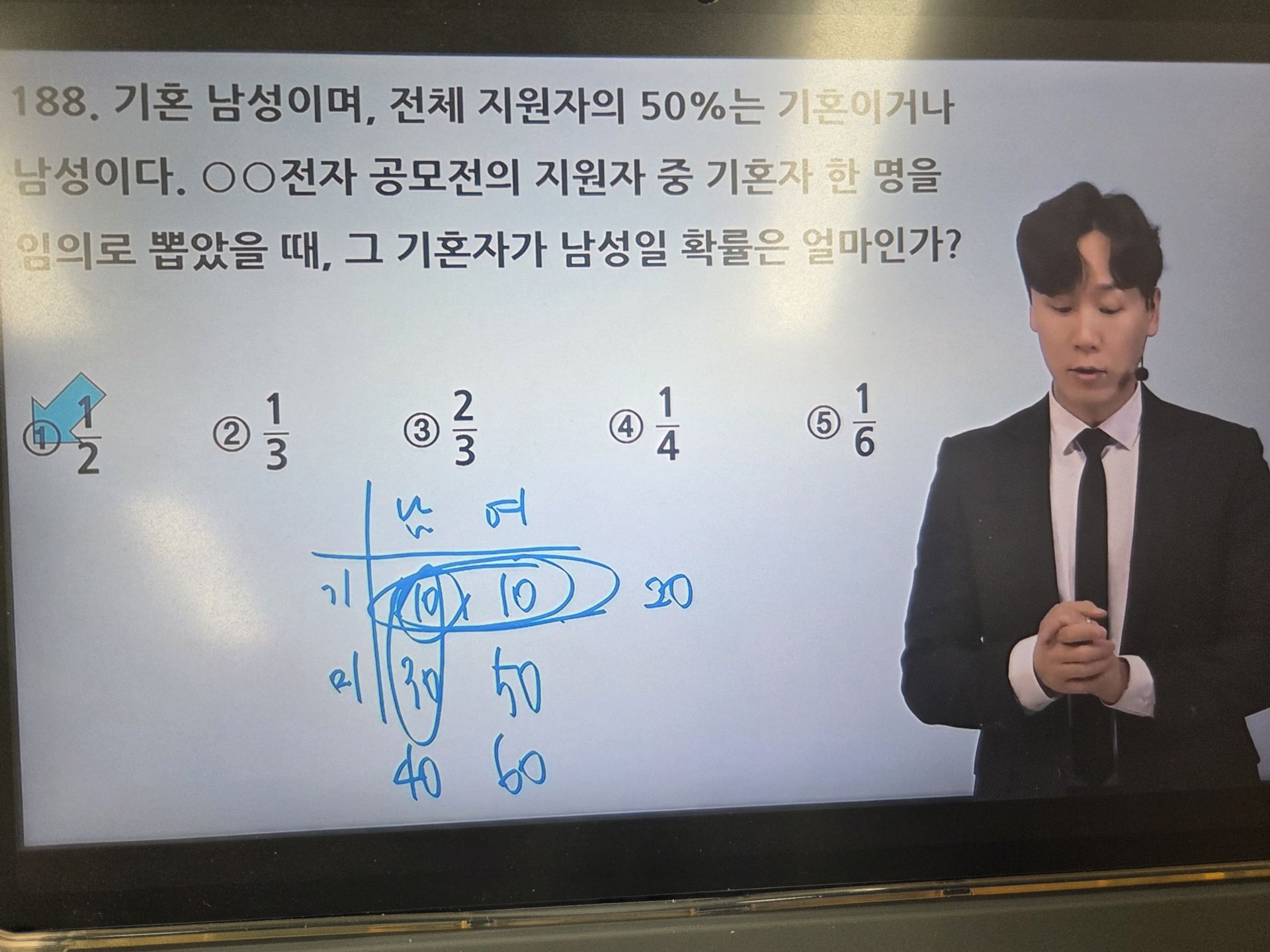 그리고 확률 파트 특히 조건부 확률 문제는 보면 바로 넘기는 문제였는데