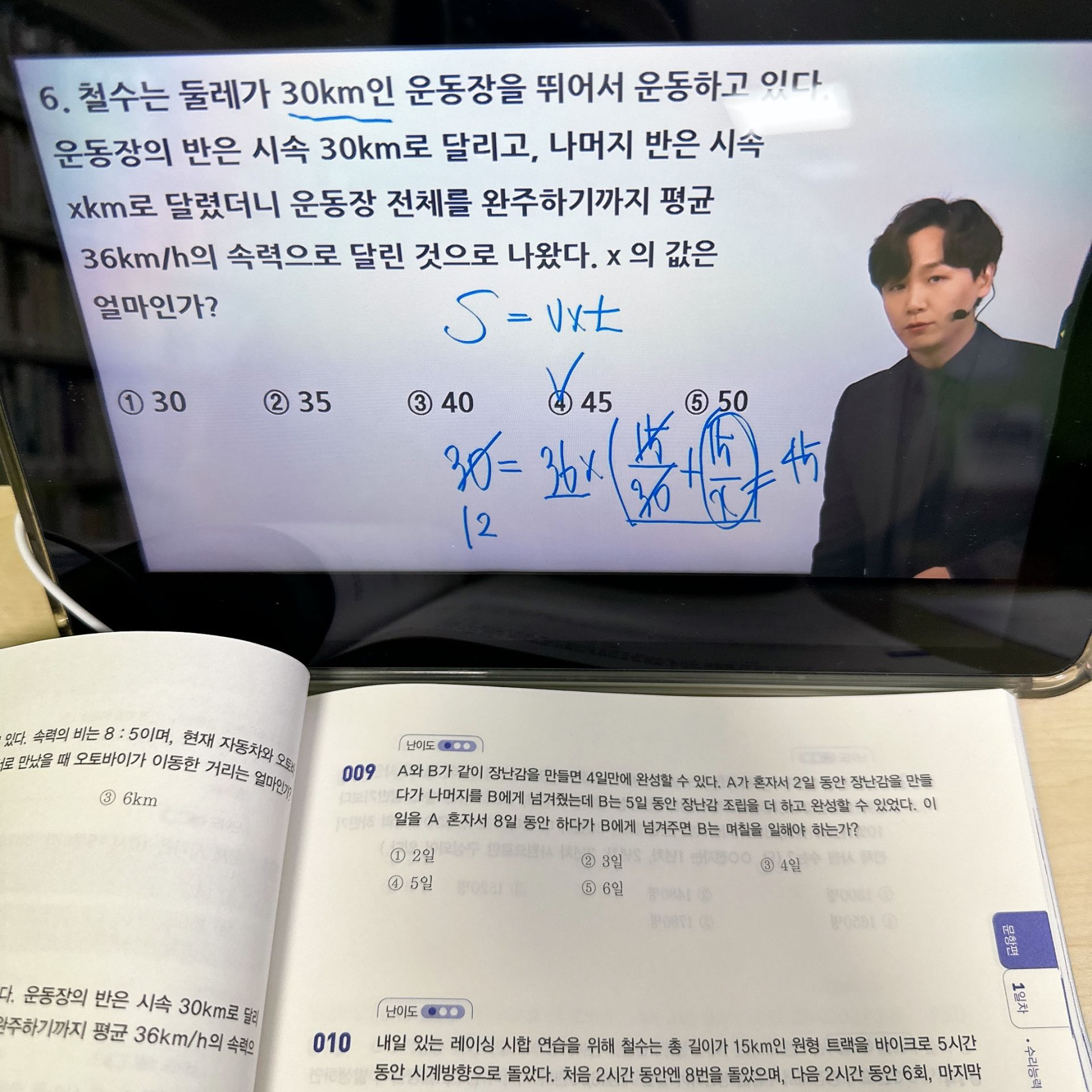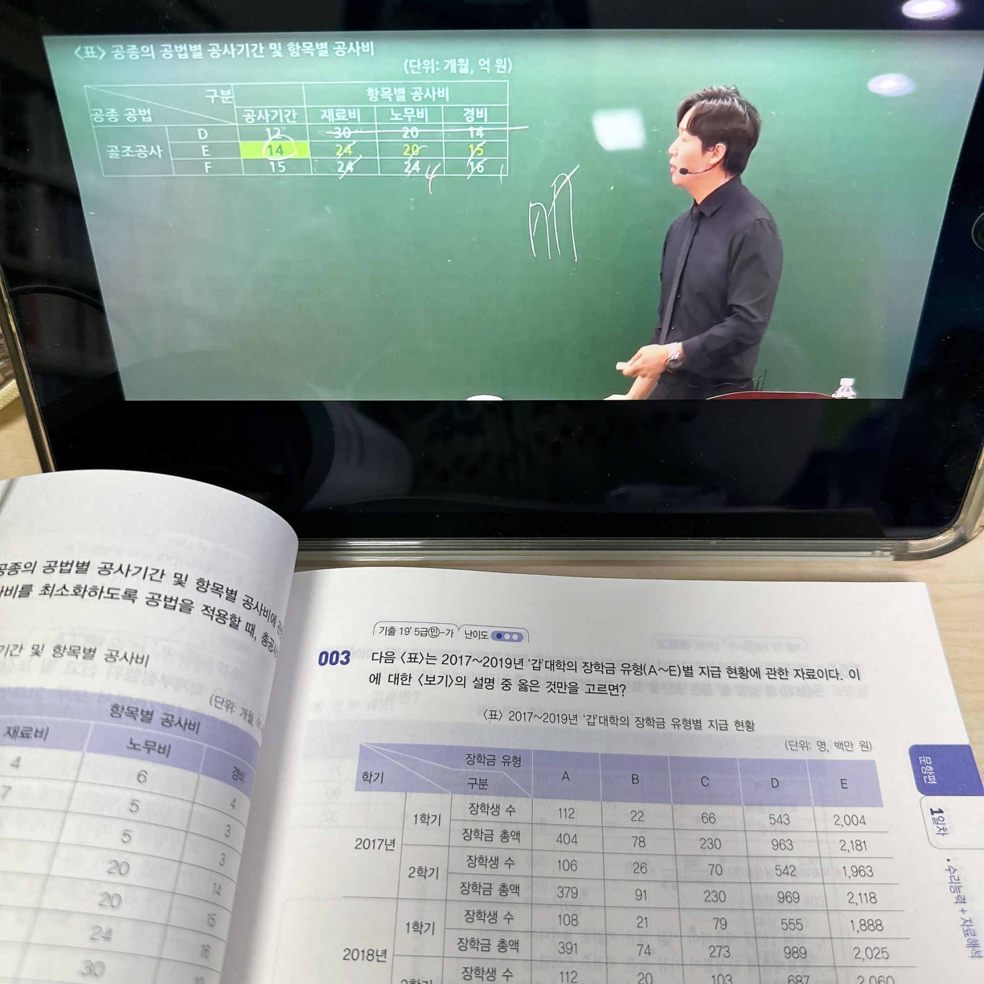 교재 구성도 실전 대비에 좋았습니다. 유형별로 포인트가 명확해서 복습할 때 “내가 어디서 막히는지” 체크가 쉽고, 강의 듣고 바로 교재로 반복하면 풀이 속도가 조금씩 올라가는 게 체감됩니다. 아직은 어렵게 느껴지는 부분도 있지만, 이번 주에 배운 유형들은 오답노트로 패턴 정리 → 같은 유형 2~3회 반복 → 시간 재면서 재풀이 방식으로 꾸준히 늘려갈 계획입니다.