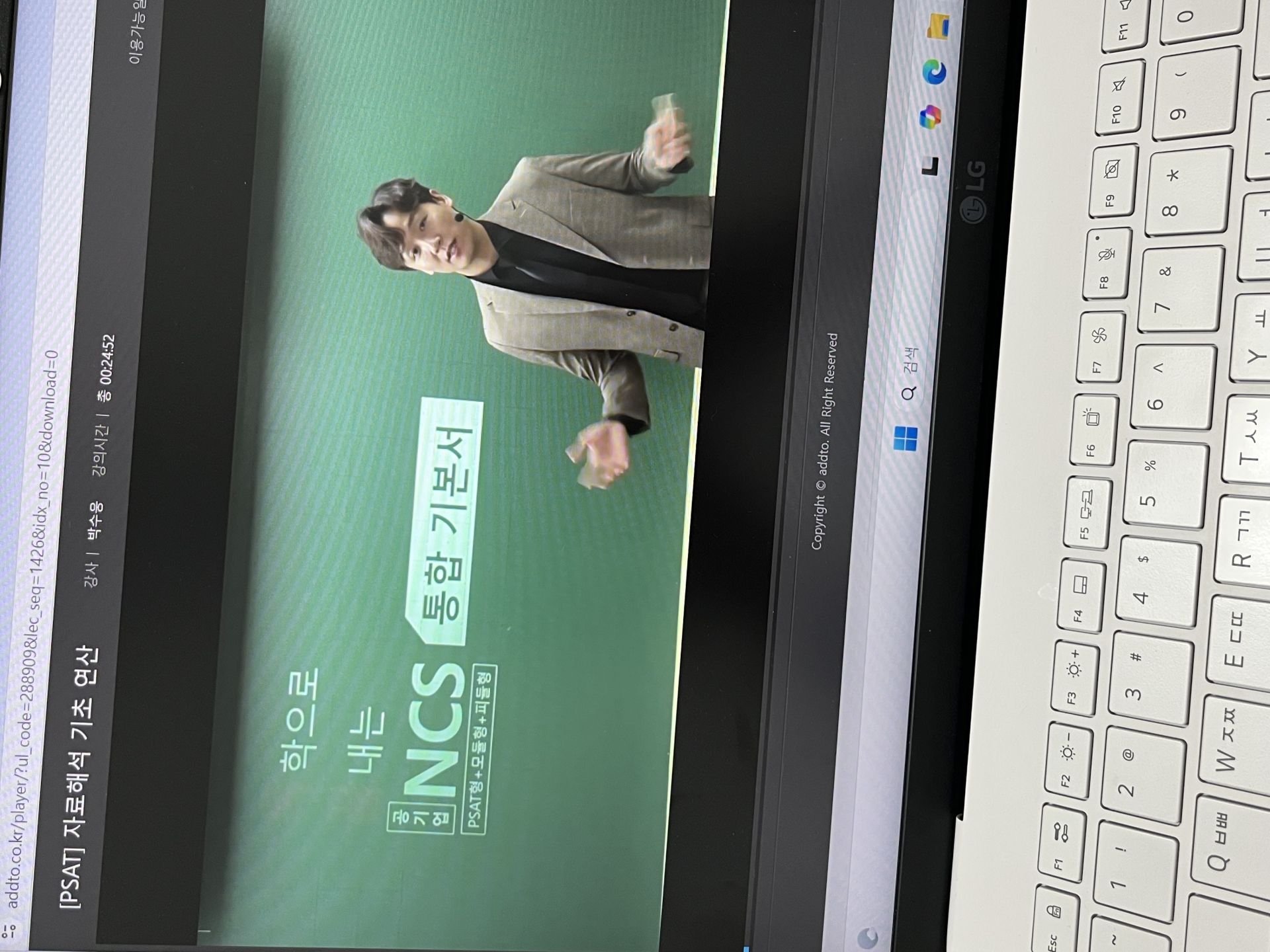 일단 NCS 초보자로서 기본 인강을 들어볼 필요가 있겠다고 느꼈고, 애드투 (박수웅·길자은 독끝 NCS 통합 기본서 이론+문풀(모듈편+피셋편)) 인강을 구매했습니다. 두 분이 파트별로 나누어 강의 진행해주십니다. NCS를 처음 접하는 입장에선 박수웅 강사님의 계산 팁들이 매우 유익했습니다. 500제 인강도 들어보고 싶을 정도로요.. 특히 응용수리가 좋습니다. 속력문제, 소금물문제, 일률문제뿐 아니라 배수문제나 몰아주기 방식 등도 알려주셔서 도움이 많이 됩니다.