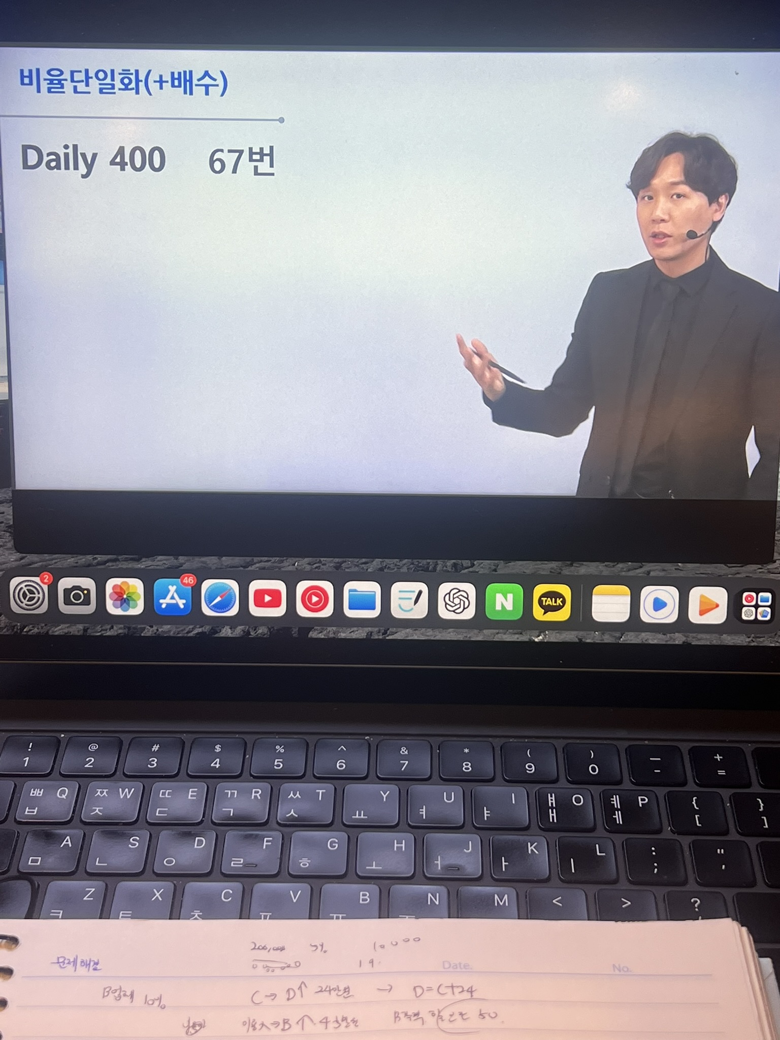 교재 구성도 실전 대비에 좋았습니다. 유형별로 포인트가 명확해서 복습할 때 “내가 어디서 막히는지” 체크가 쉽고, 강의 듣고 바로 교재로 반복하면 풀이 속도가 조금씩 올라가는 게 체감됩니다. 아직은 어렵게 느껴지는 부분도 있지만, 이번 주에 배운 유형들은 오답노트로 패턴 정리 → 같은 유형 2~3회 반복 → 시간 재면서 재풀이 방식으로 꾸준히 늘려갈 계획입니다.