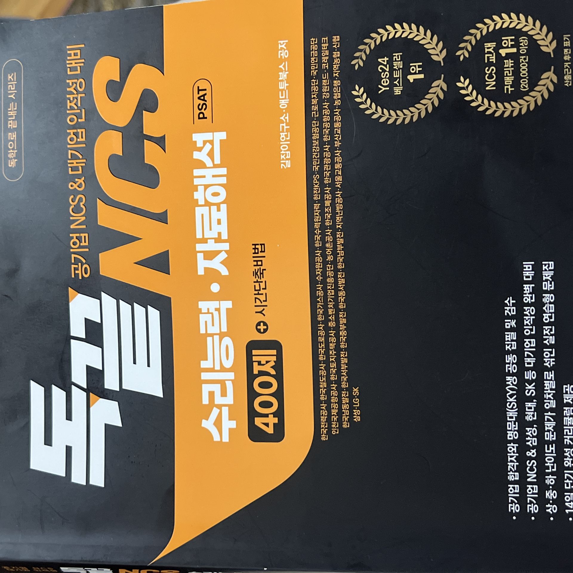 독끝 NCS 문제해결능력+자원관리능력을 사용해보고 좋아서 수리능력, 자료해석도 풀어봤다. 수많은 공겹 취준생들에게 혼자 독학하기에 정말 좋은 교재고 인강이라고하는데, 왜 그런지 지난번 문제해결능력+자원관리때도 느꼈지만 이번 수리능력, 자료해석 교재를 보면서도 또 느꼈다. 공기업 준비하는 독학러들에게 진짜 추천할만한 교재랑 인강이라고 생각된다. 공기업, PSAT 합격자의 NCS 문제풀이 시간단축 팁을 전체 문항에서 배울 수 있어 빠르게 답을 찾는 연습이 가능한 교재였다.