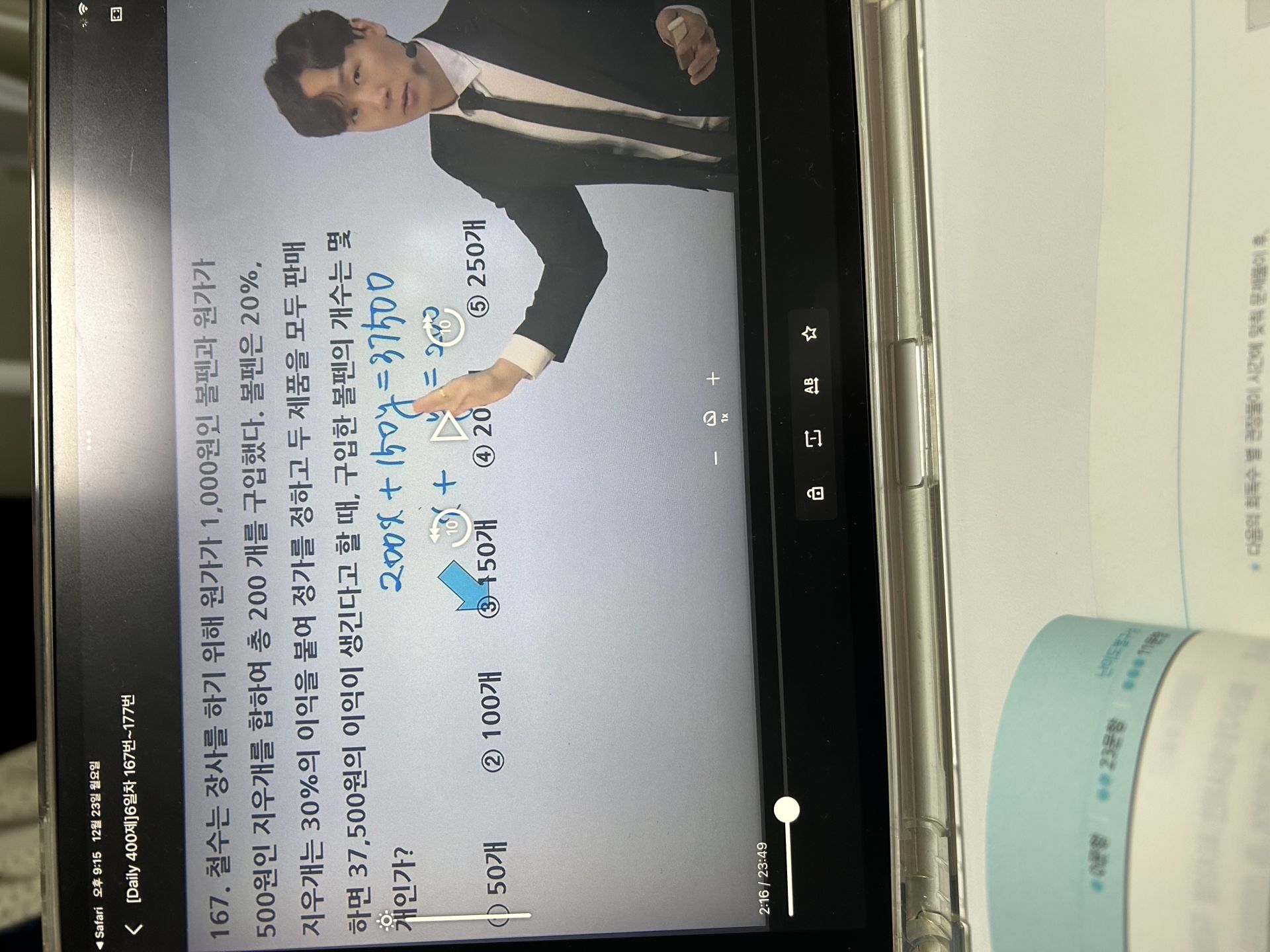 다시 풀어보라는 문제는 일시정지 하고 다시 풀어보았고 선생님 풀이법과 비교해보았습니다.