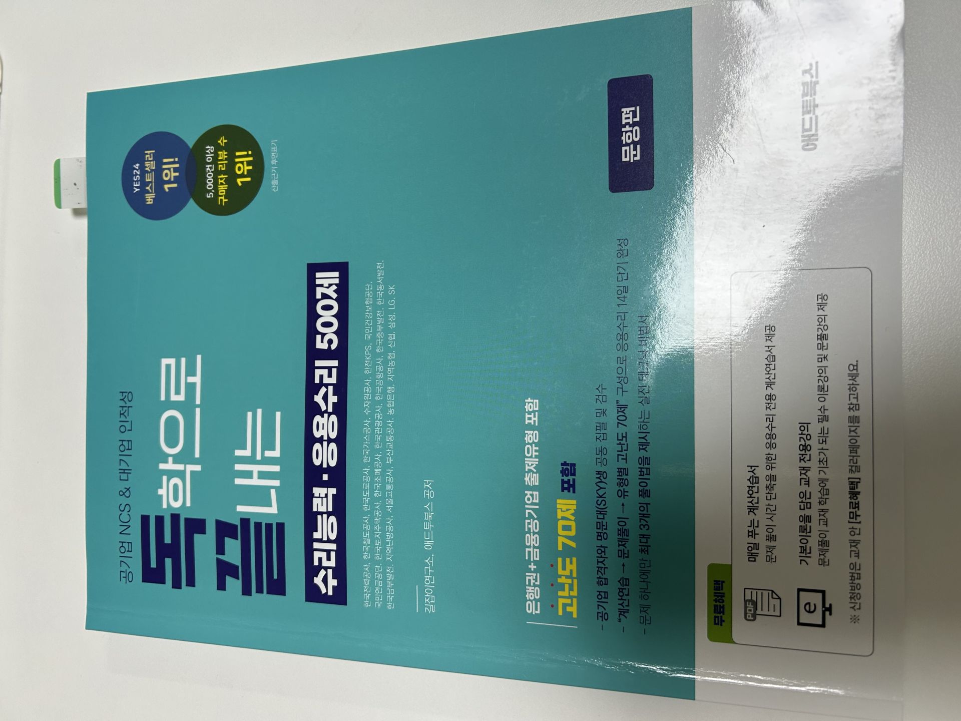 독끝 NCS 문제해결능력+자원관리능력을 사용해보고 좋아서 수리능력, 자료해석도 풀어봤다. 수많은 공겹 취준생들에게 혼자 독학하기에 정말 좋은 교재고 인강이라고하는데, 왜 그런지 지난번 문제해결능력+자원관리때도 느꼈지만 이번 수리능력, 자료해석 교재를 보면서도 또 느꼈다. 공기업 준비하는 독학러들에게 진짜 추천할만한 교재랑 인강이라고 생각된다. 공기업, PSAT 합격자의 NCS 문제풀이 시간단축 팁을 전체 문항에서 배울 수 있어 빠르게 답을 찾는 연습이 가능한 교재였다.