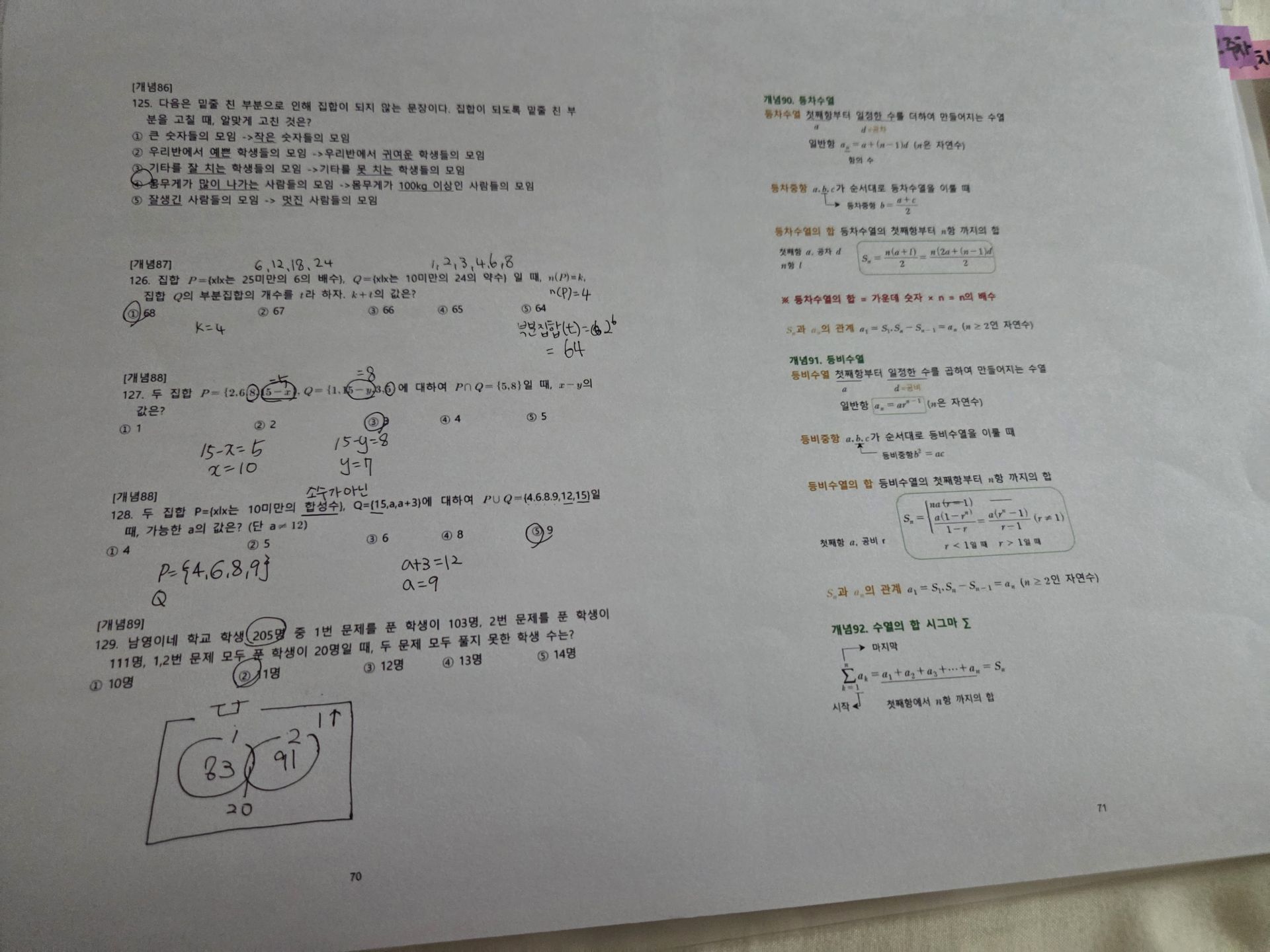 수열 파트에서는 등차·등비수열의 일반항과 합 공식을 활용한 응용 문제 풀이로 연산력뿐 아니라 문제해결 접근력을 키웠습니다.