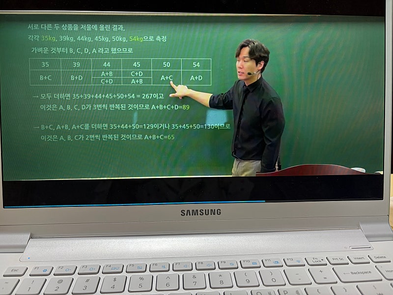수웅쌤 강의의 가장 큰 장점은 첫째, 실전적인 시간 단축 비법을 전수해주신다는 것입니다. 정석적인 방정식을 써서 길게 계산하는 방식이 아니라 대입법, 가감법, ⭐️몰아주기, 간소화⭐️등 강의를 들은 사람만 아는 꿀팁들을 가르쳐주십니다. 특히 몰아주기와 간소화 기법을 체화하면 복잡한 수치도 암산으로 처리할 수 있을 만큼 계산이 단순해집니다.
