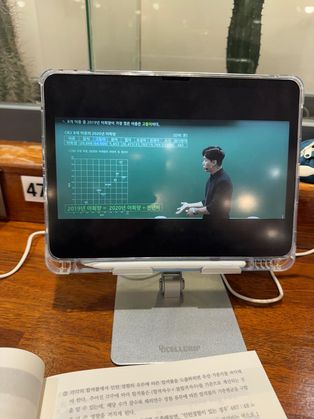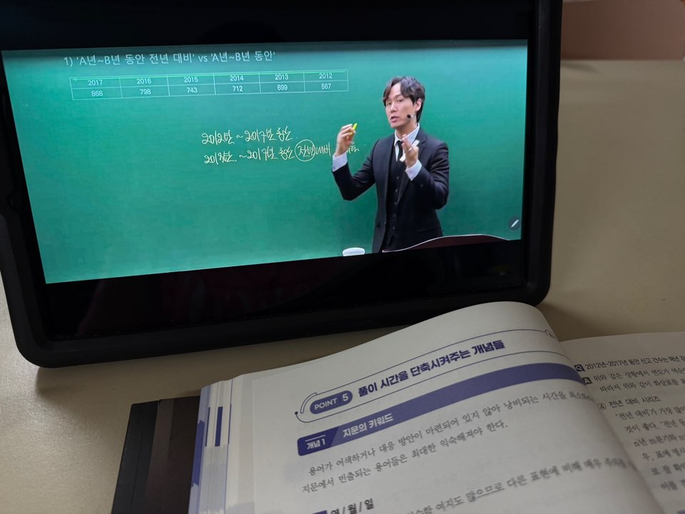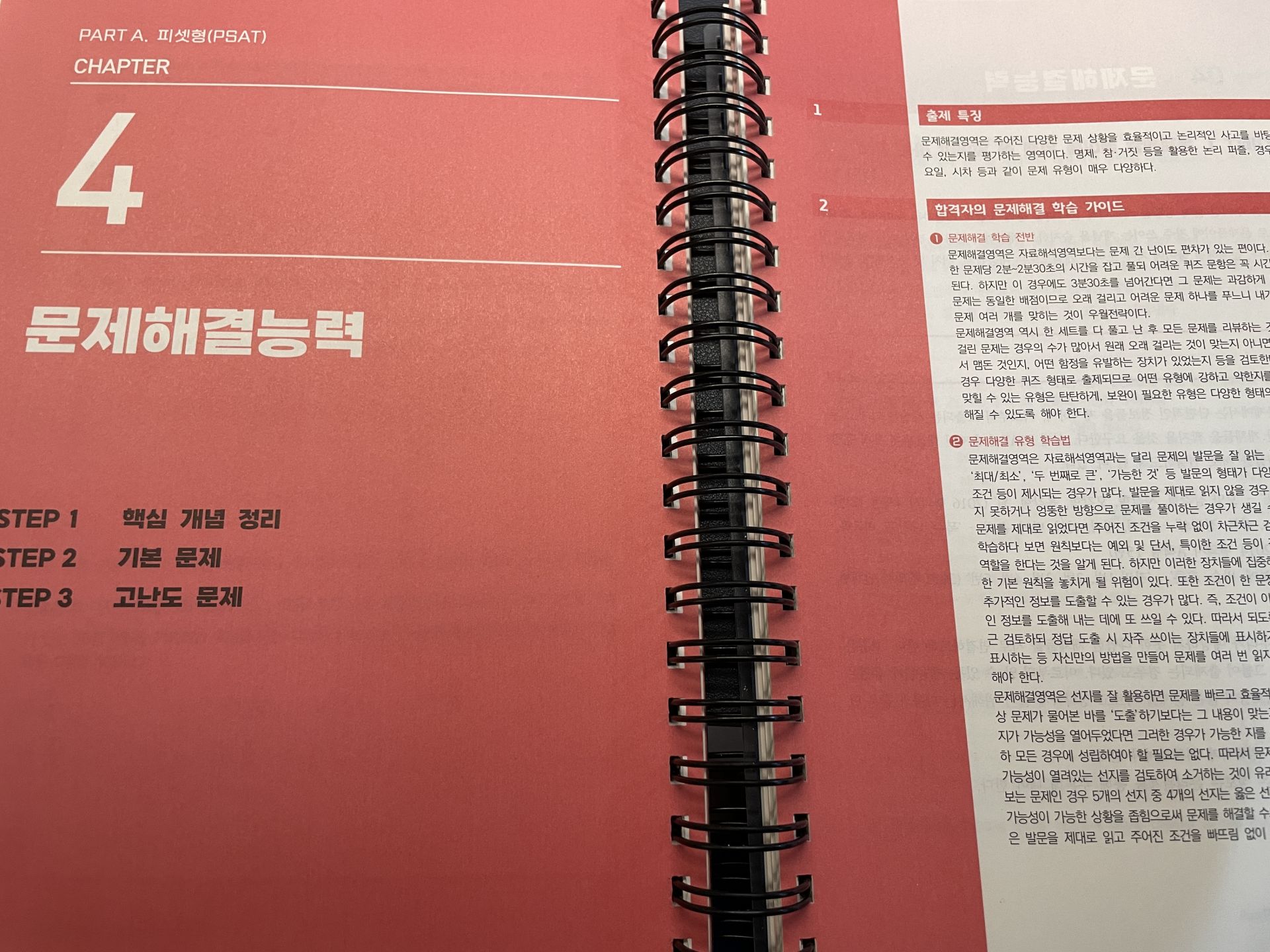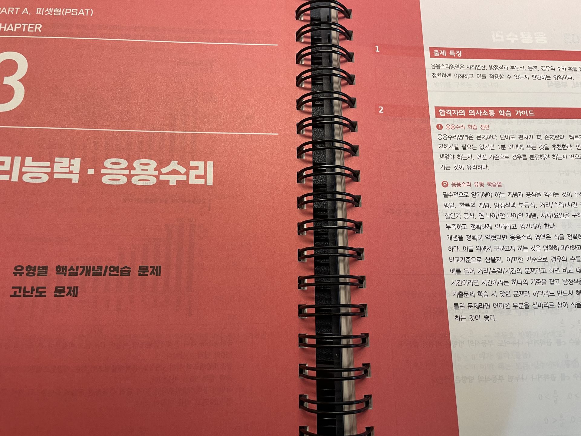 교재 구성도 실전 대비에 좋았습니다. 유형별로 포인트가 명확해서 복습할 때 “내가 어디서 막히는지” 체크가 쉽고, 강의 듣고 바로 교재로 반복하면 풀이 속도가 조금씩 올라가는 게 체감됩니다. 아직은 어렵게 느껴지는 부분도 있지만, 이번 주에 배운 유형들은 오답노트로 패턴 정리 → 같은 유형 2~3회 반복 → 시간 재면서 재풀이 방식으로 꾸준히 늘려갈 계획입니다.