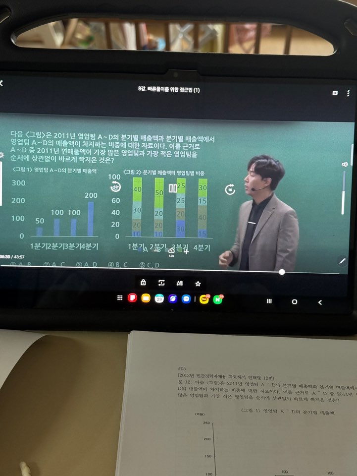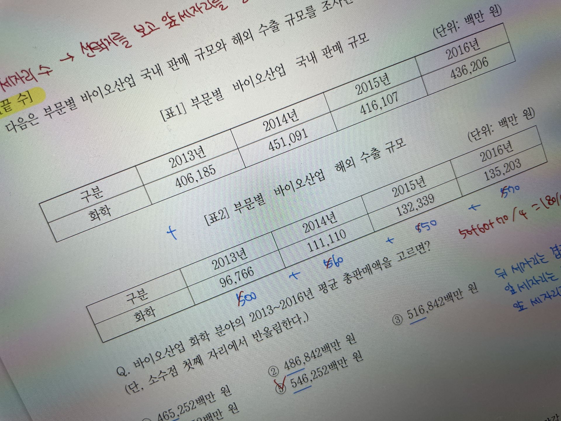 특히 자료해석 쪽에서 시간을 많이 내지 못하는 상황이라 답답했는데 선생님께서 알려주시는 시간 단축 스킬들을 배우고나니 아 이런 방법이 있었구나 싶더라구요.