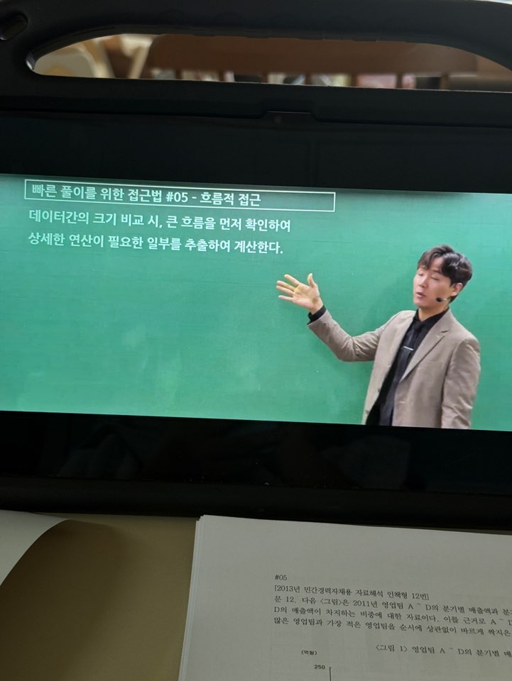 독끝 스터디 과정 2주차에는 박수웅 선생님과 '자료해석'과 '응용수리' 진도를 나갔습니다. 개인적으로 제일 취약하다고 생각하는 파트라 문제를 보기만하면 지레 겁부터 먹곤했는데, 선생님께서 알려주시는 풀이법을 하나하나씩 차근히 따라가다보니 생각보다 쉽게 풀릴 수 있다는 문제라는 점을 깨닫고 신선한 충격을 받은 적이 정말 많습니다... 괜히 명강의,명강사로 불리는 게 아니더라구요 ㅠㅠ bb