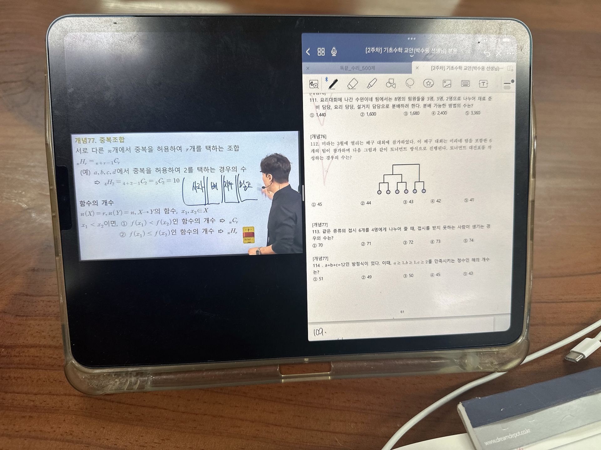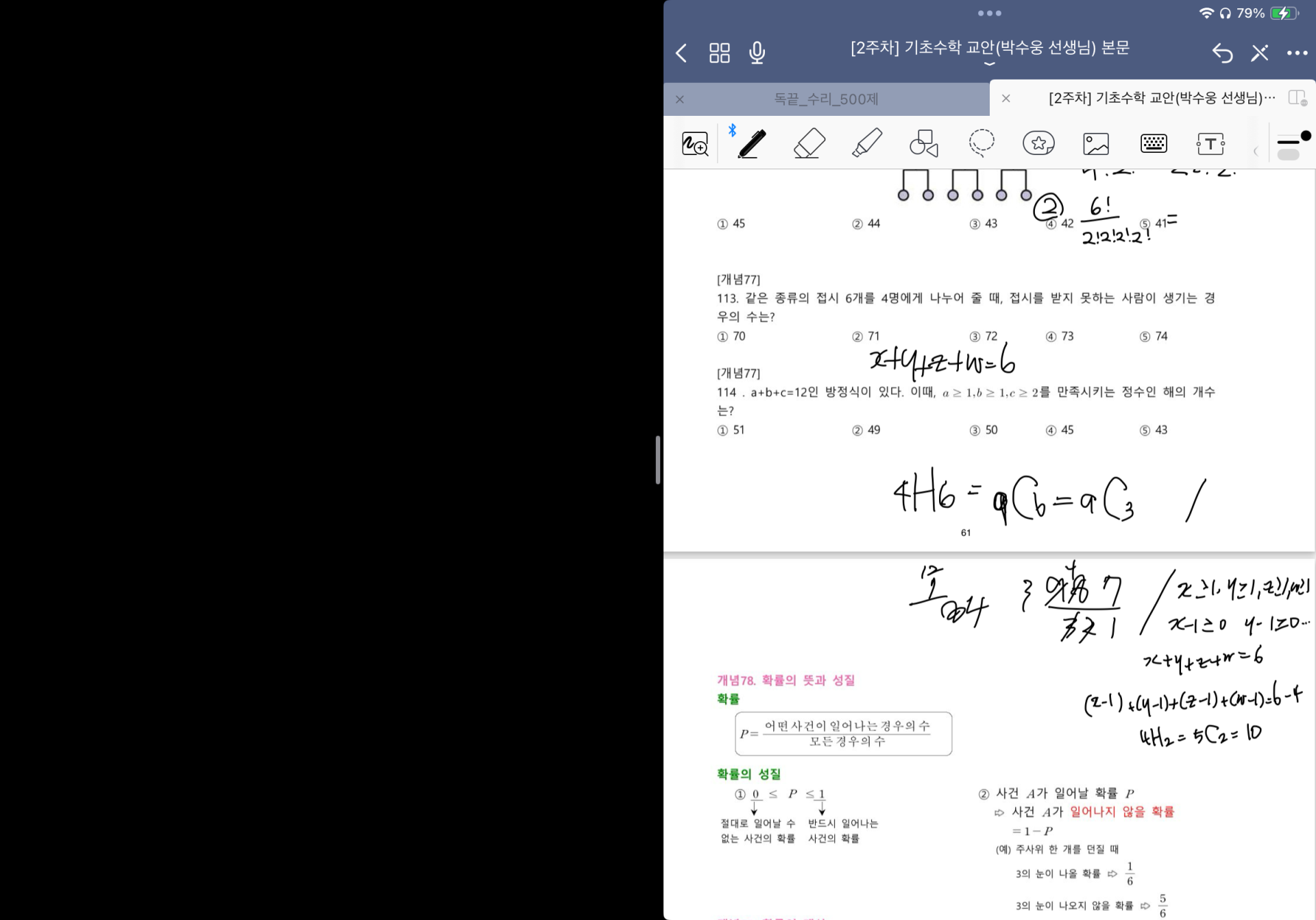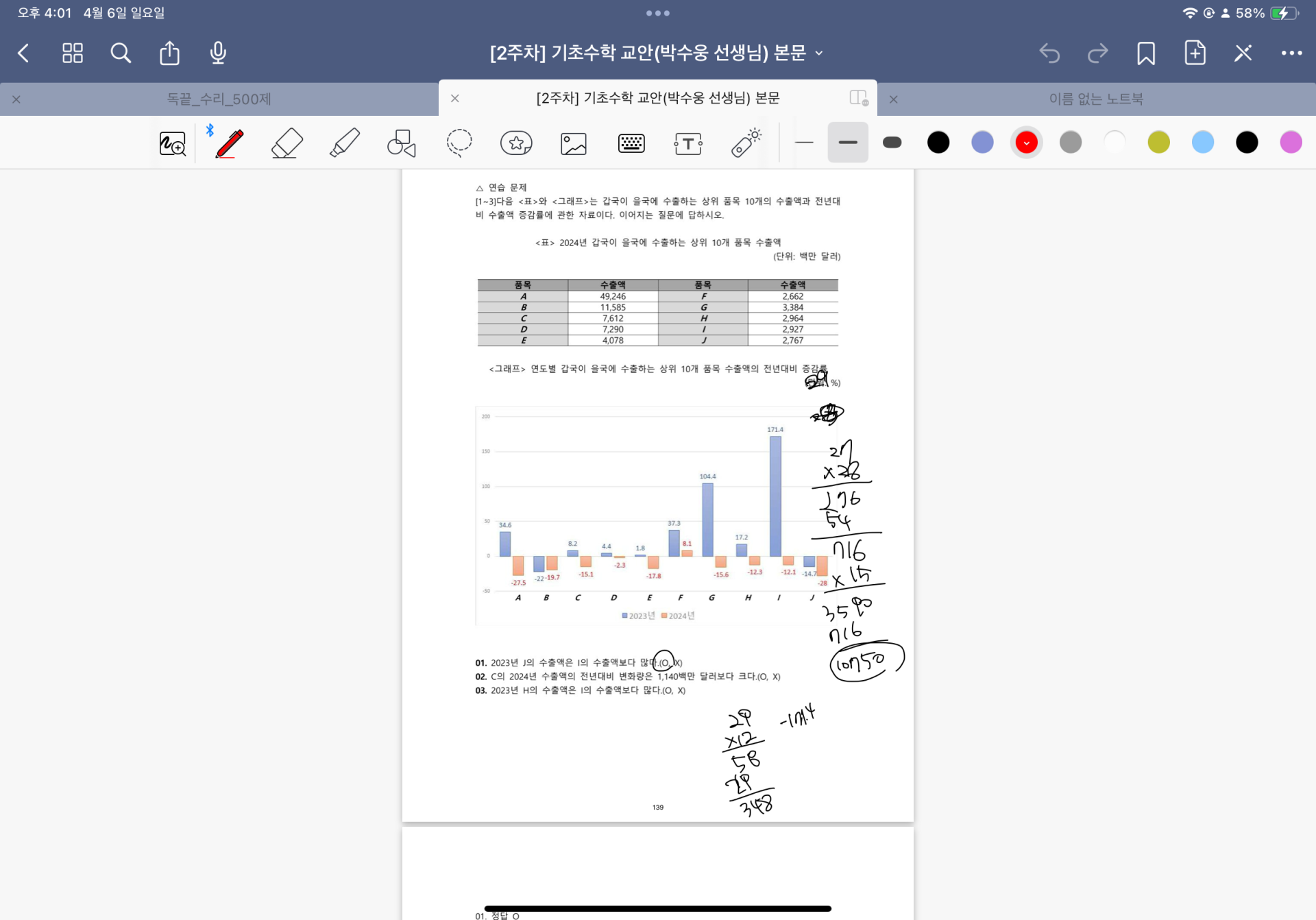 다시 풀어보라는 문제는 일시정지 하고 다시 풀어보았고 선생님 풀이법과 비교해보았습니다.