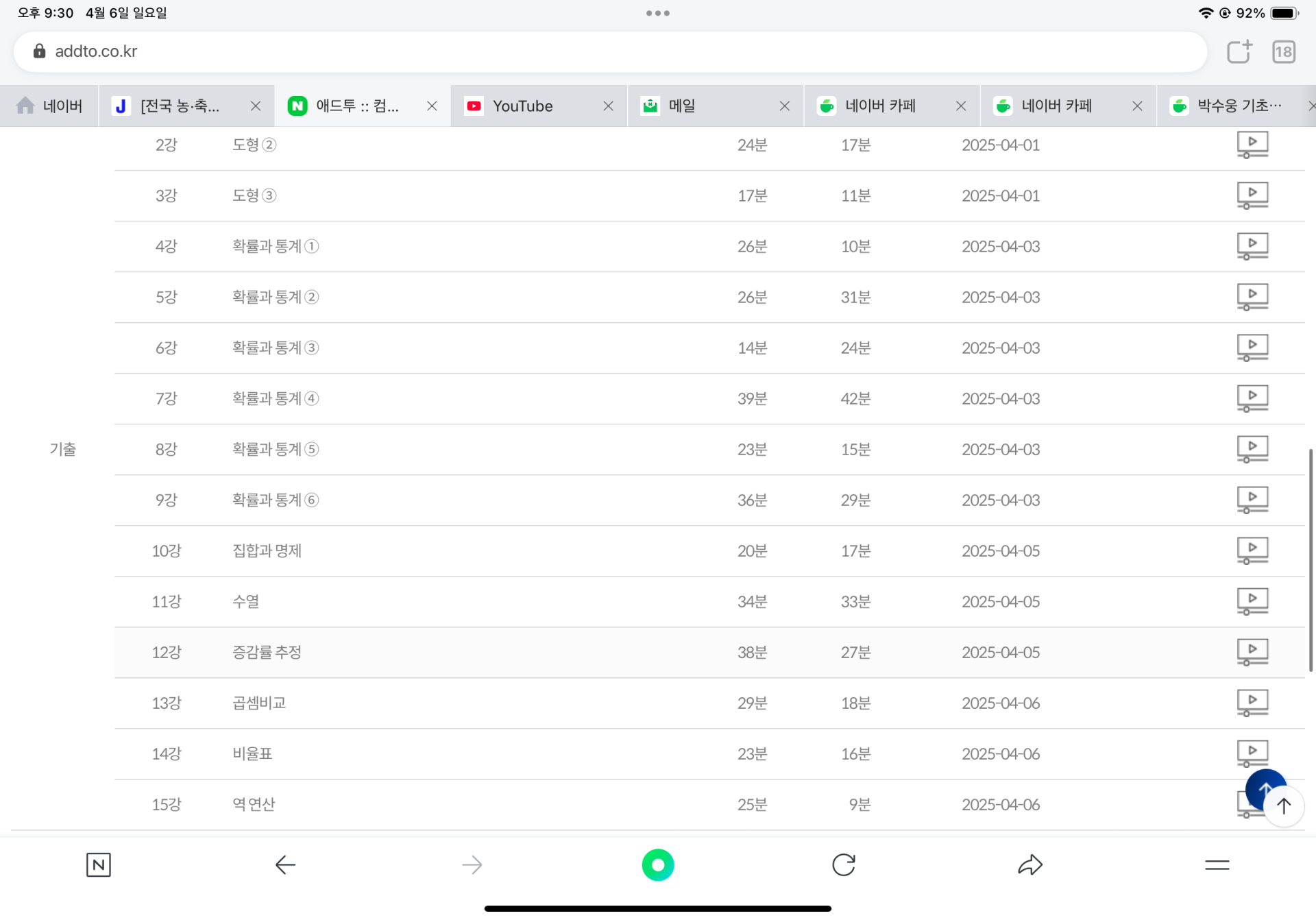 물론 강의를 듣는 것만으로 끝나는 것이 아니라 복습과 기본 공식·개념 암기는 스스로 꾸준히 해야 한다는 점도 다시 한번 느꼈습니다. 강의가 방향을 잡아주는 역할이라면, 반복 연습은 결국 제 몫이라는 생각으로 복습 루틴도 함께 만들고 있습니다.