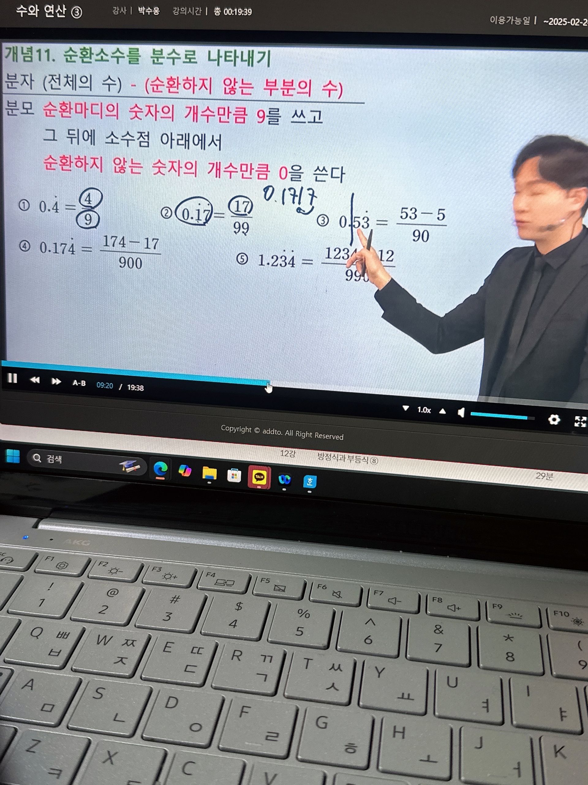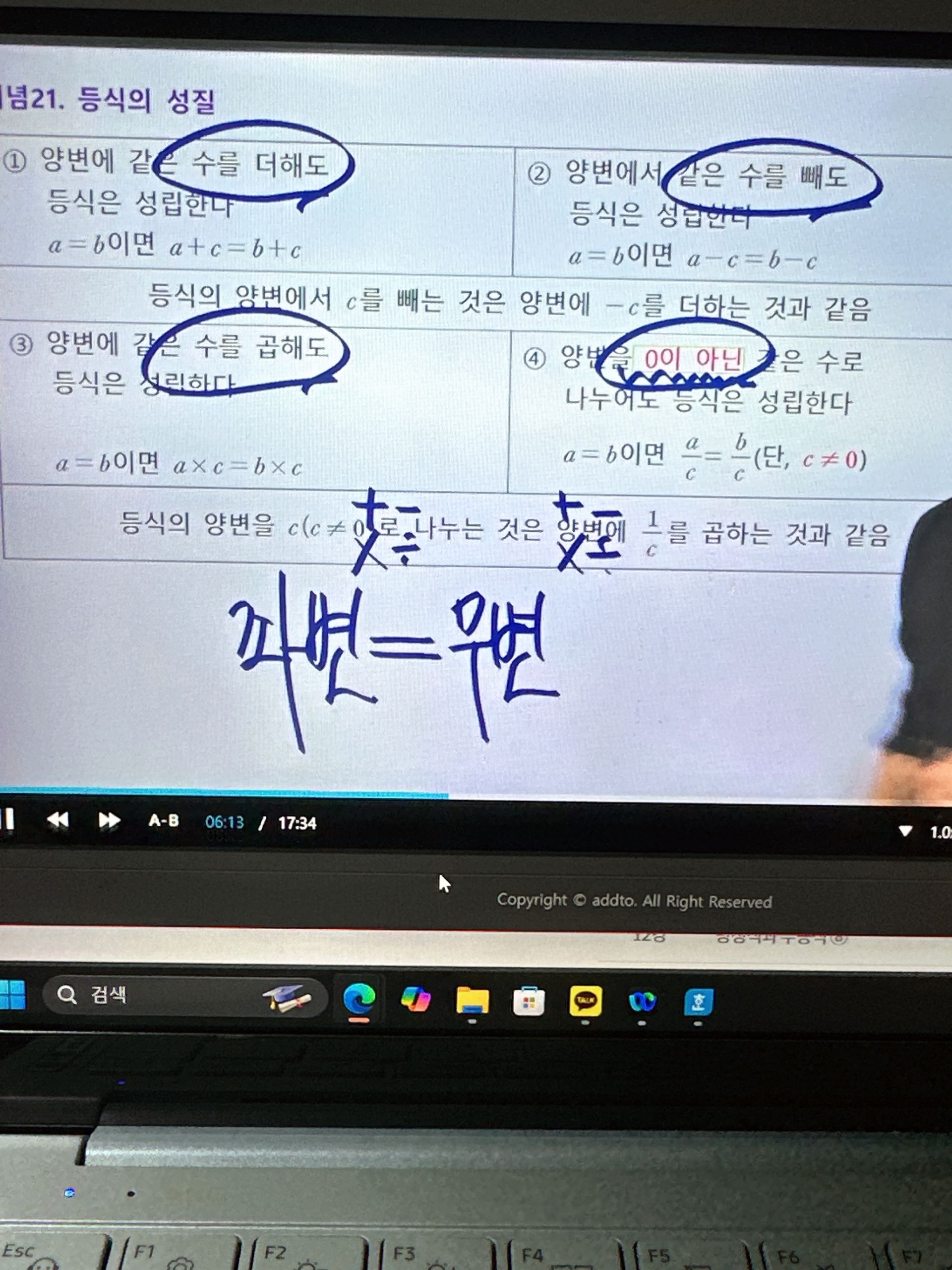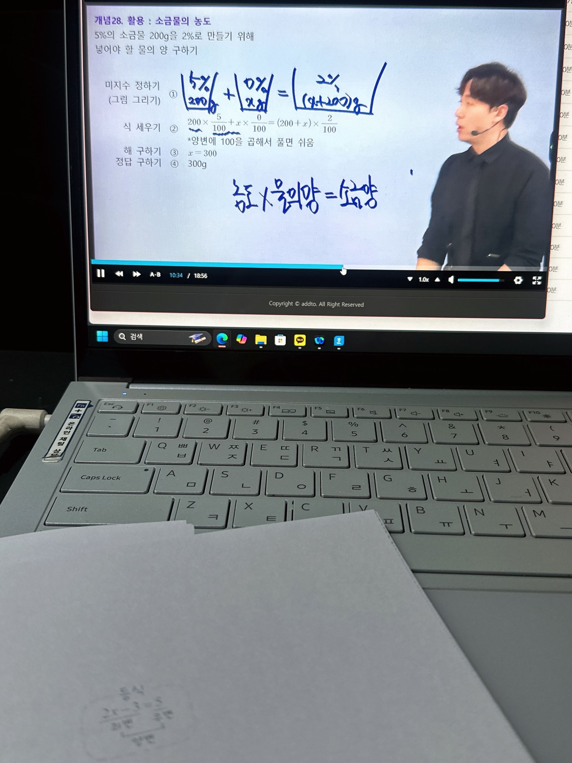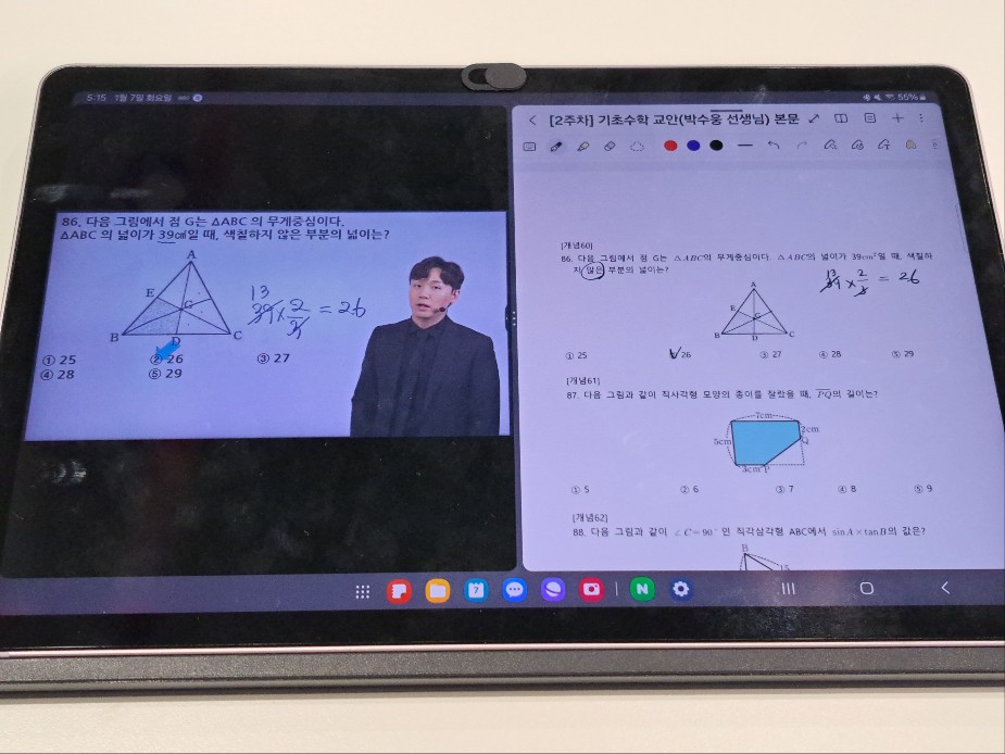 다시 풀어보라는 문제는 일시정지 하고 다시 풀어보았고 선생님 풀이법과 비교해보았습니다.