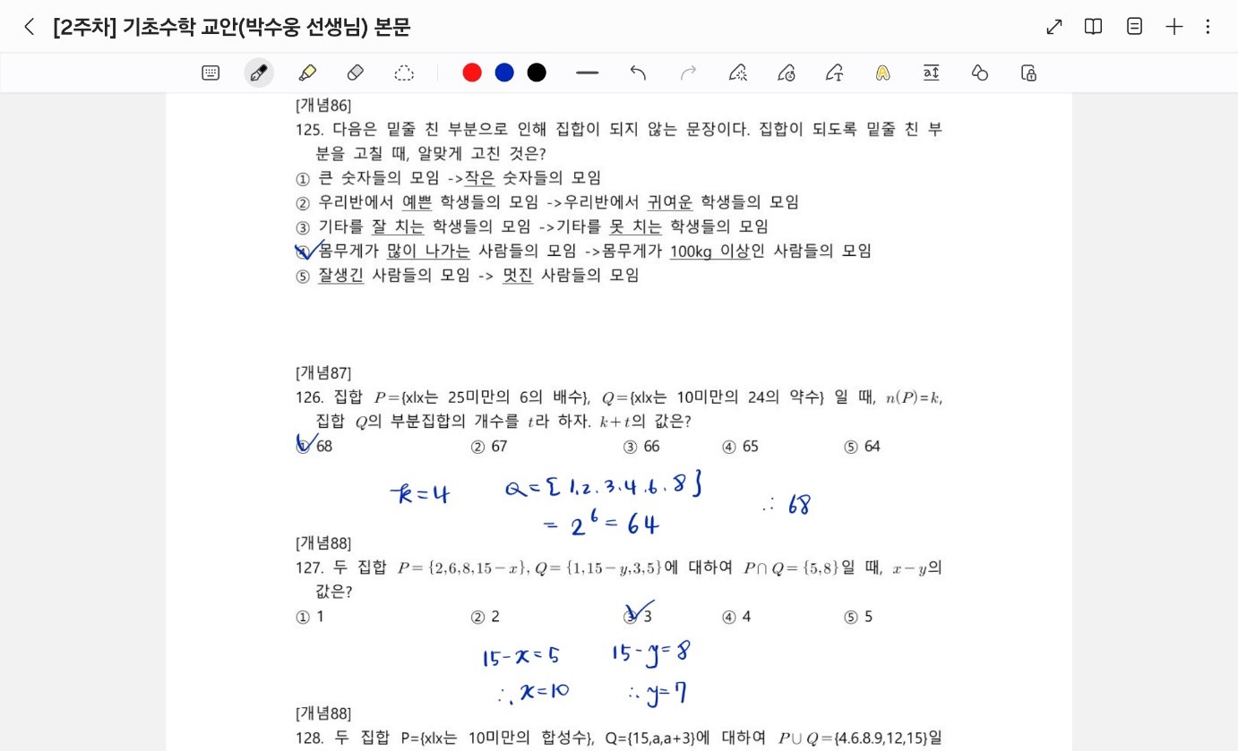 의수문자 전체 강의로 구매했고, 특히 수학은 쌩기초뷰터 잡아쥬셔서 너무 좋았습니다. 다른데가면 꿀팁이라고 알려주긴 하는데 그건 적용 가능한 범위가 너무 한종적이어서 특수한 상황에서만 적용되고 이런게 많더라고요. 박수옹 선생님은 기본기 기반으로 팁을 알려주셔서 그거 따라갔습니드. 쌤 덕분에 기초 잘 쌓았습니다.