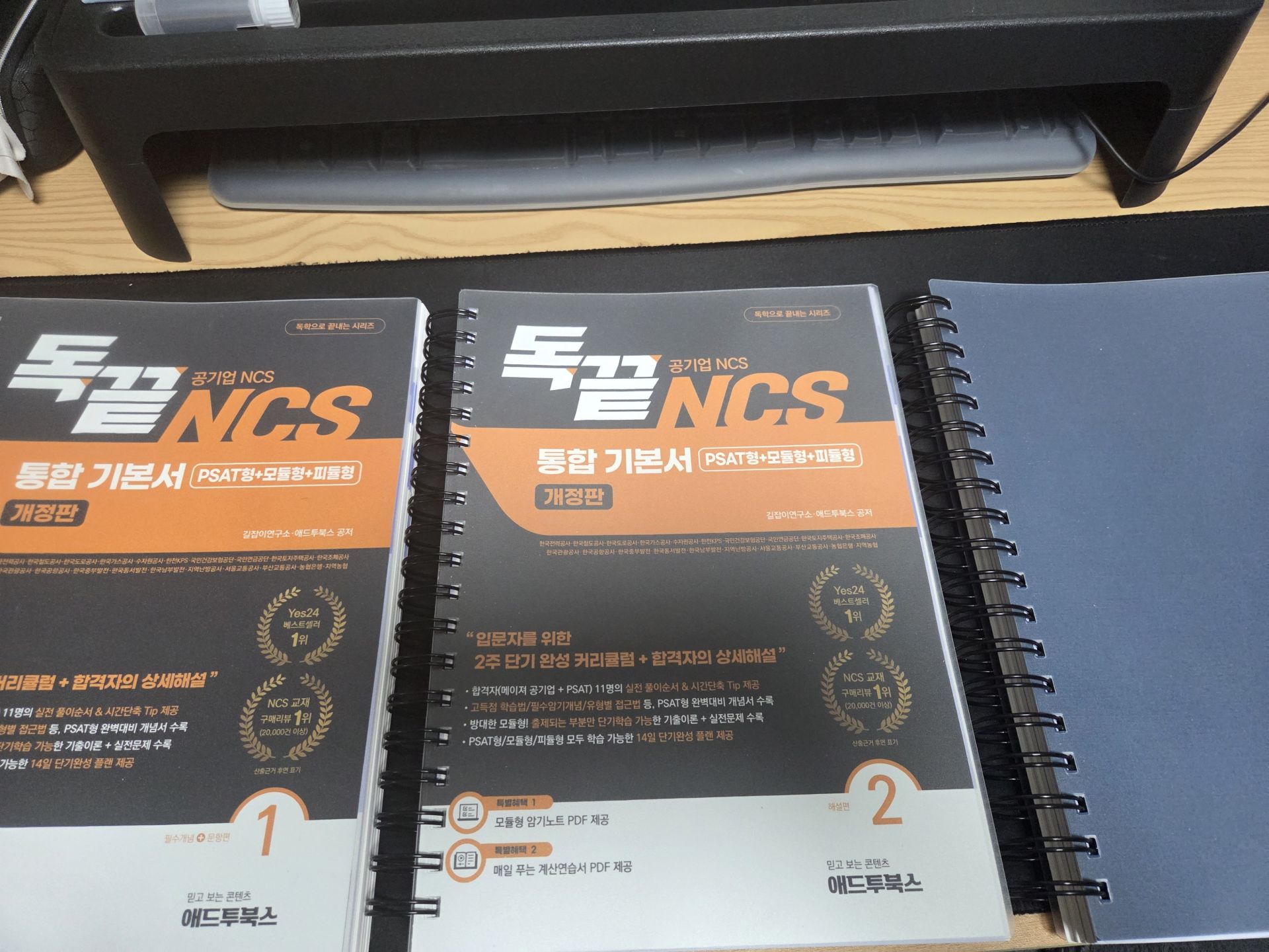 일단 NCS 초보자로서 기본 인강을 들어볼 필요가 있겠다고 느꼈고, 애드투 (박수웅·길자은 독끝 NCS 통합 기본서 이론+문풀(모듈편+피셋편)) 인강을 구매했습니다. 두 분이 파트별로 나누어 강의 진행해주십니다. NCS를 처음 접하는 입장에선 박수웅 강사님의 계산 팁들이 매우 유익했습니다. 500제 인강도 들어보고 싶을 정도로요.. 특히 응용수리가 좋습니다. 속력문제, 소금물문제, 일률문제뿐 아니라 배수문제나 몰아주기 방식 등도 알려주셔서 도움이 많이 됩니다.