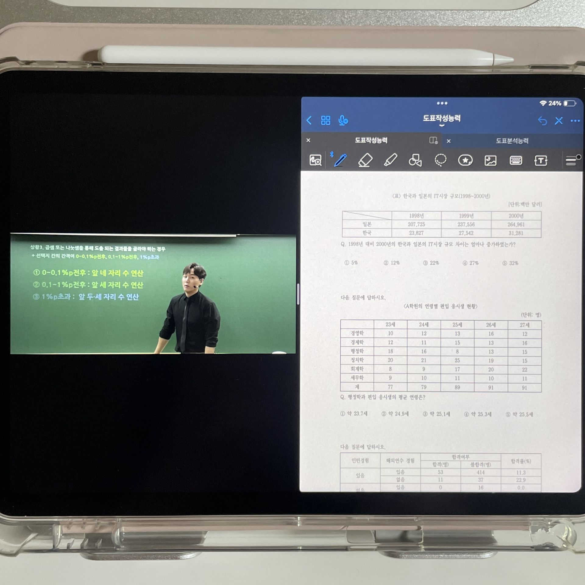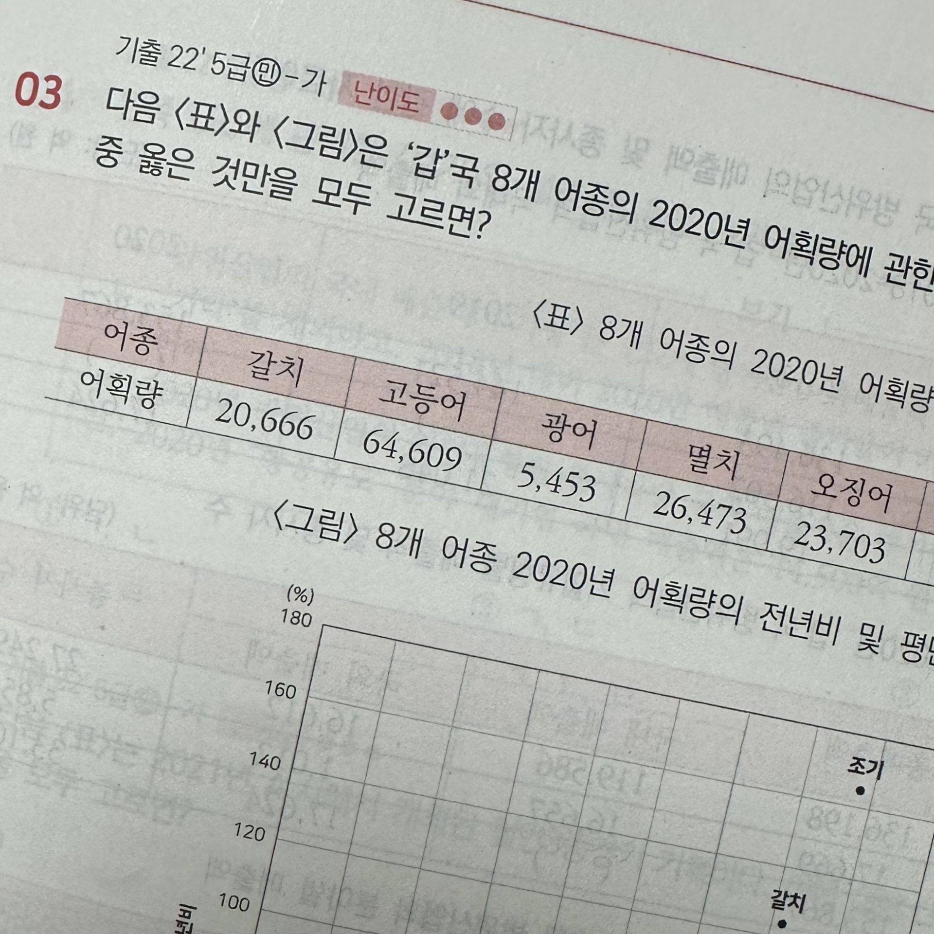 자료해석에서는 표와 그래프에서 핵심 수치를 빠르게 찾아내는 방법을 익힐 수 있었습니다.