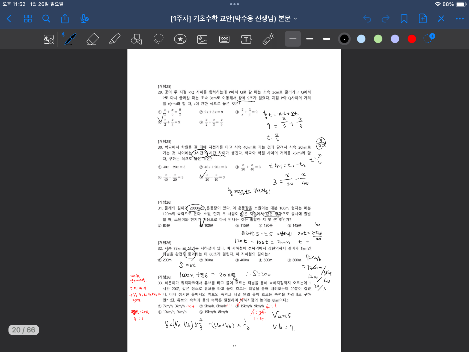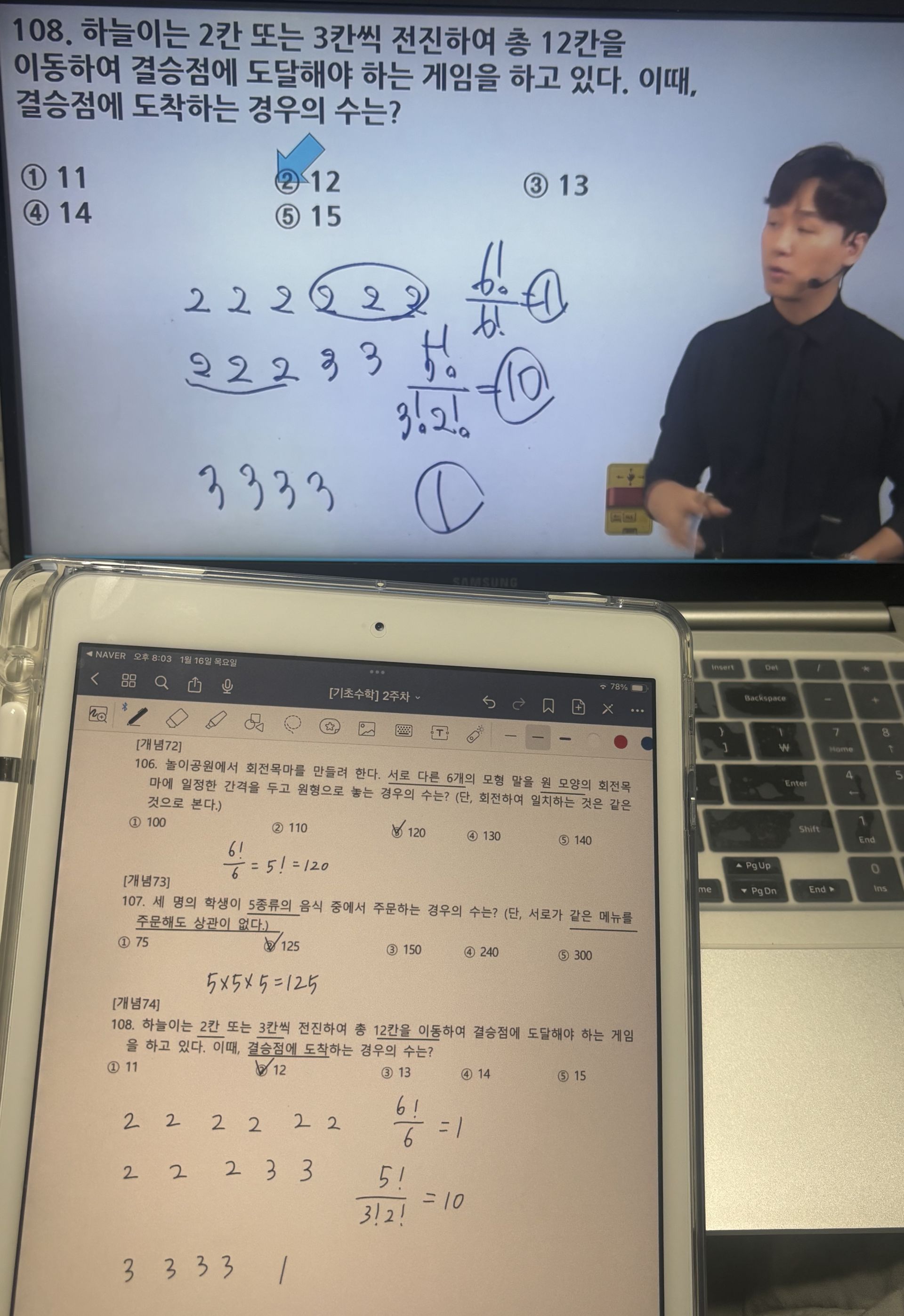 다시 풀어보라는 문제는 일시정지 하고 다시 풀어보았고 선생님 풀이법과 비교해보았습니다.
