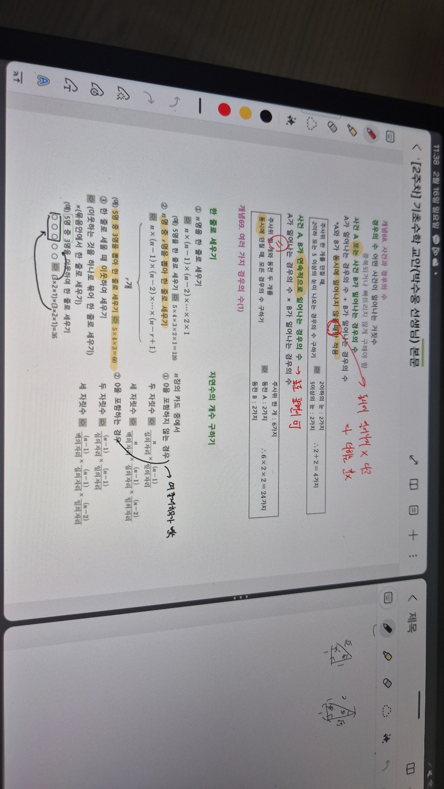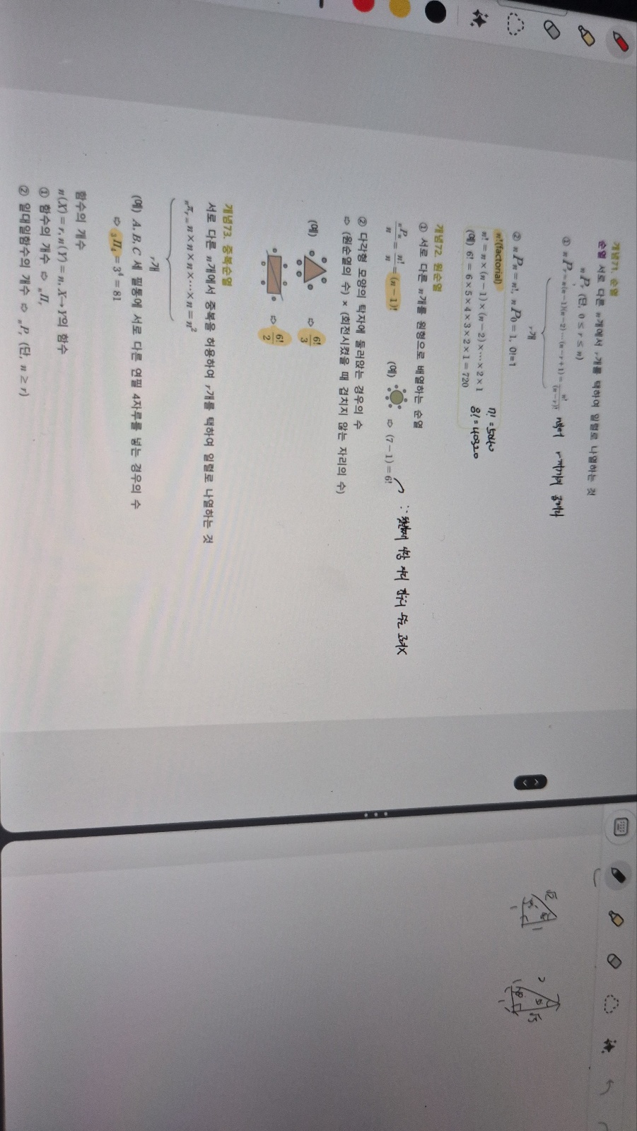 이번 스터디를 통해 확률과 통계 파트에서 잊고 있던 개념들을 되살릴 수 있어 정말 큰 도움이 되었습니다. 특히 통계 부분은 대학 전공과 관련이 있어 비교적 익숙했지만, 순열과 조합 개념은 거의 기억나지 않아 어려움을 겪고 있었습니다. 처음에는 문제를 풀 때마다 막히는 부분이 많아 답답했지만, 스터디를 통해 개념을 다시 정리하고 다양한 문제를 접하면서 점점 익숙해질 수 있었습니다.