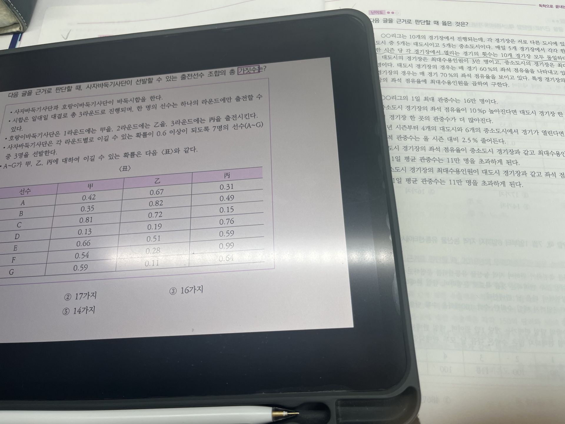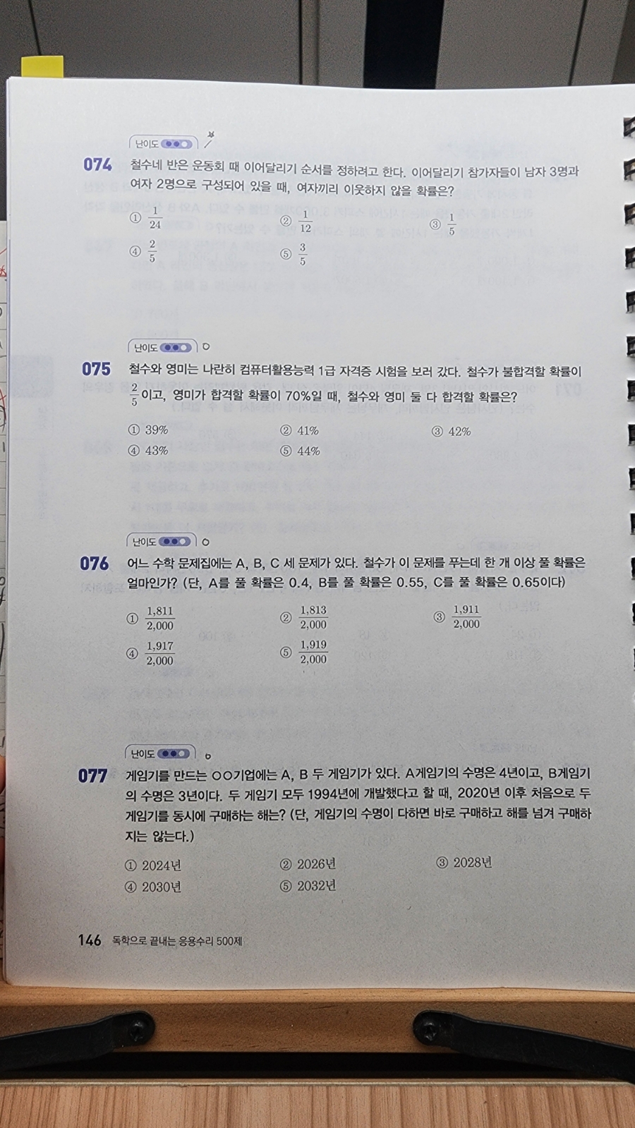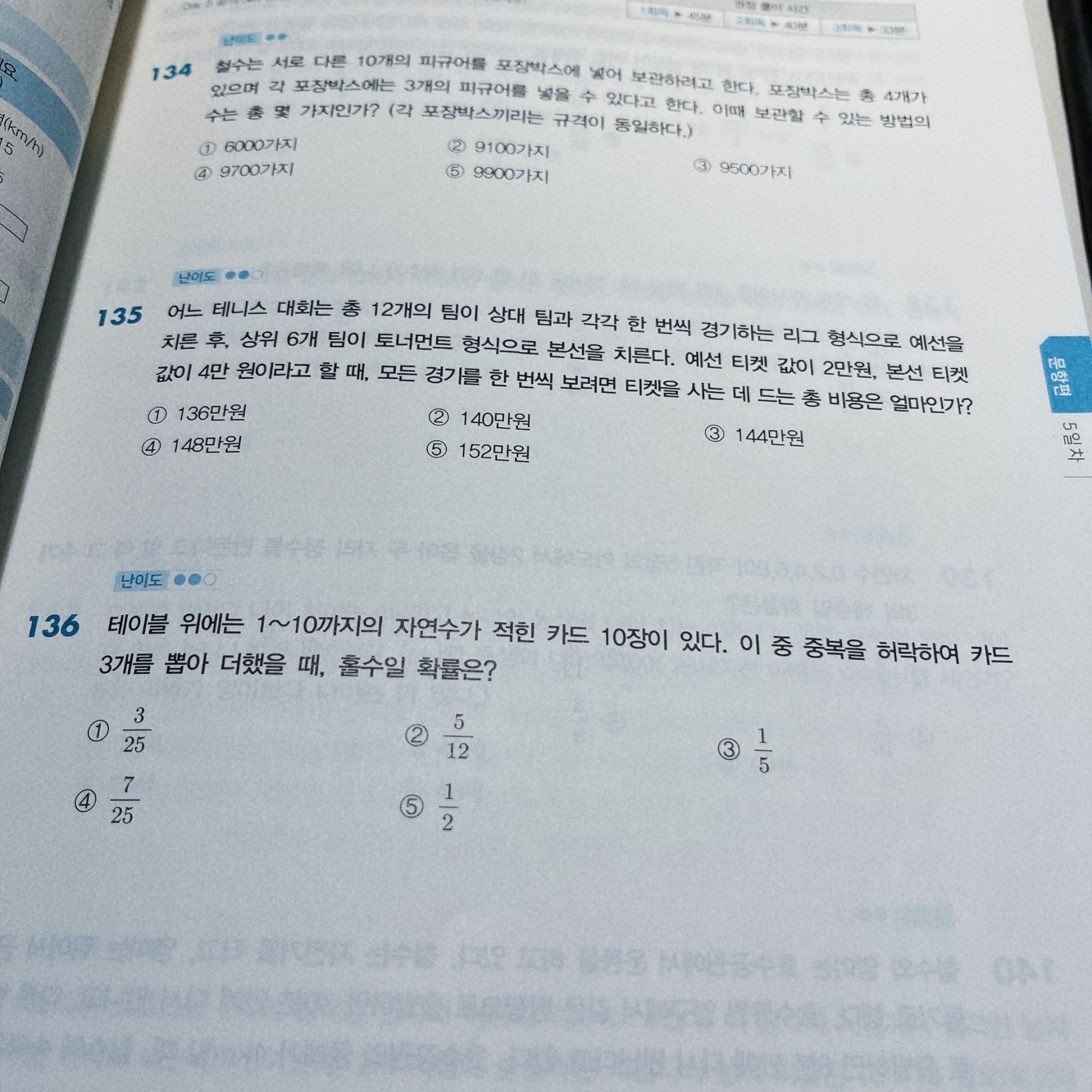 그리고 확률 파트 특히 조건부 확률 문제는 보면 바로 넘기는 문제였는데