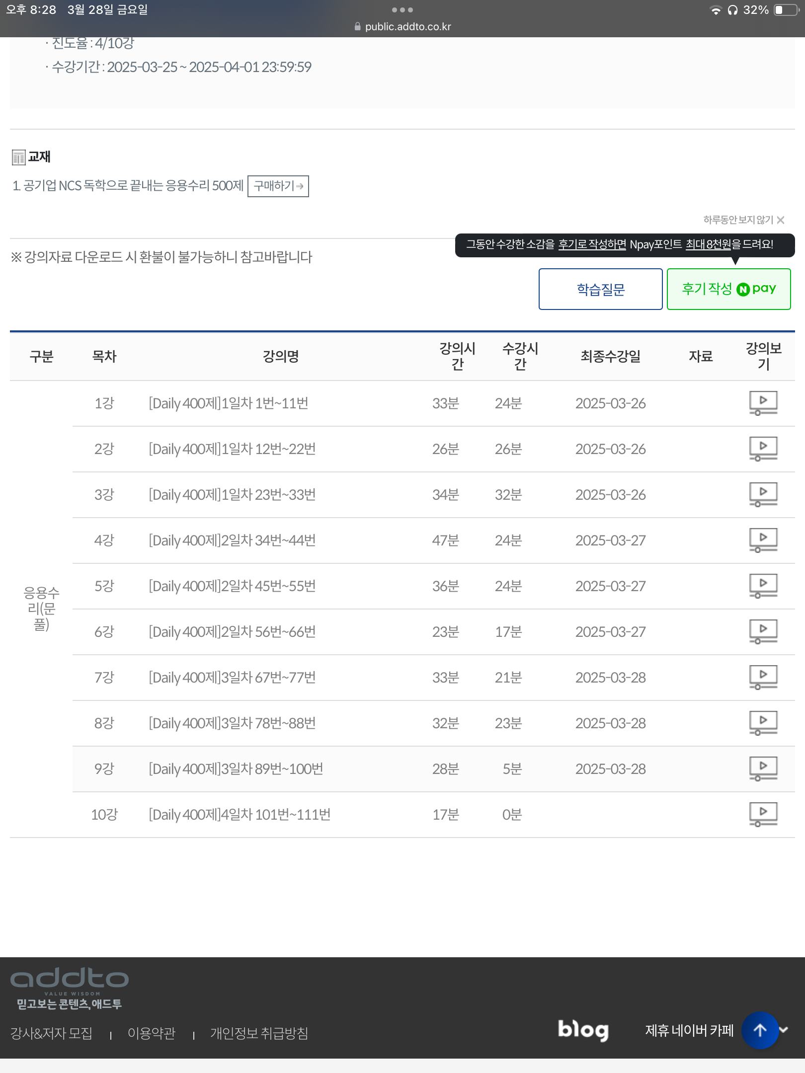 Ncs 기초수학 수강 이후 너무 좋아서 실전 강의를 신청했습니다