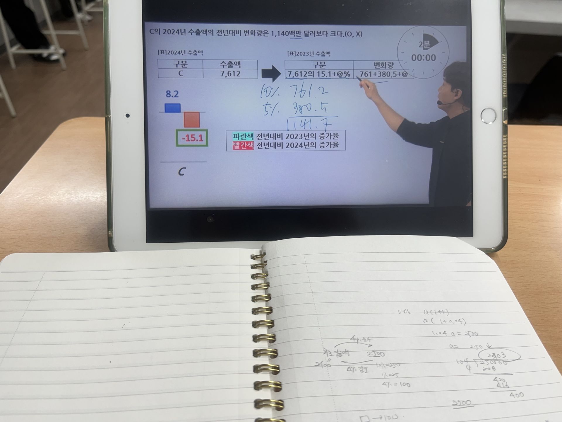 독끝 스터디 과정 2주차에는 박수웅 선생님과 '자료해석'과 '응용수리' 진도를 나갔습니다. 개인적으로 제일 취약하다고 생각하는 파트라 문제를 보기만하면 지레 겁부터 먹곤했는데, 선생님께서 알려주시는 풀이법을 하나하나씩 차근히 따라가다보니 생각보다 쉽게 풀릴 수 있다는 문제라는 점을 깨닫고 신선한 충격을 받은 적이 정말 많습니다... 괜히 명강의,명강사로 불리는 게 아니더라구요 ㅠㅠ bb