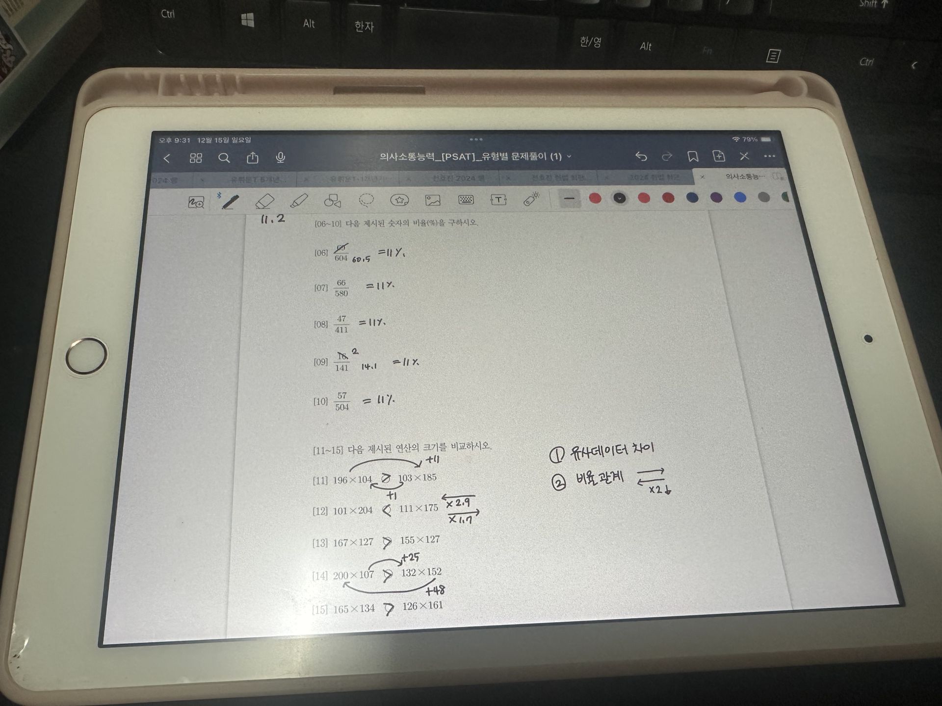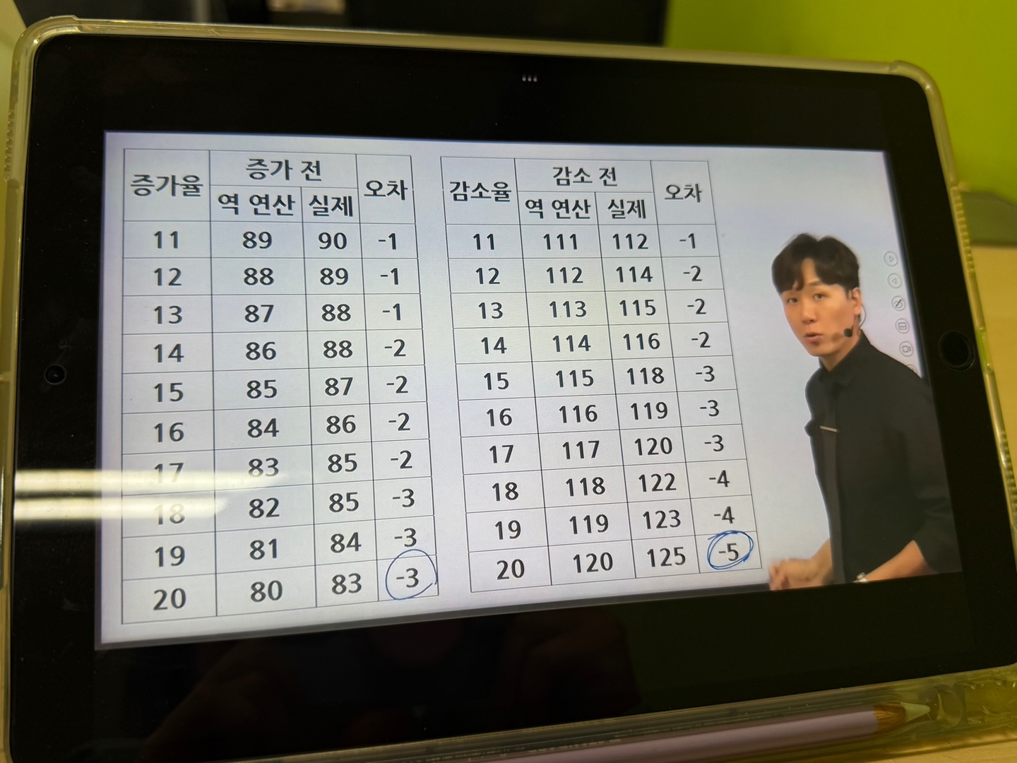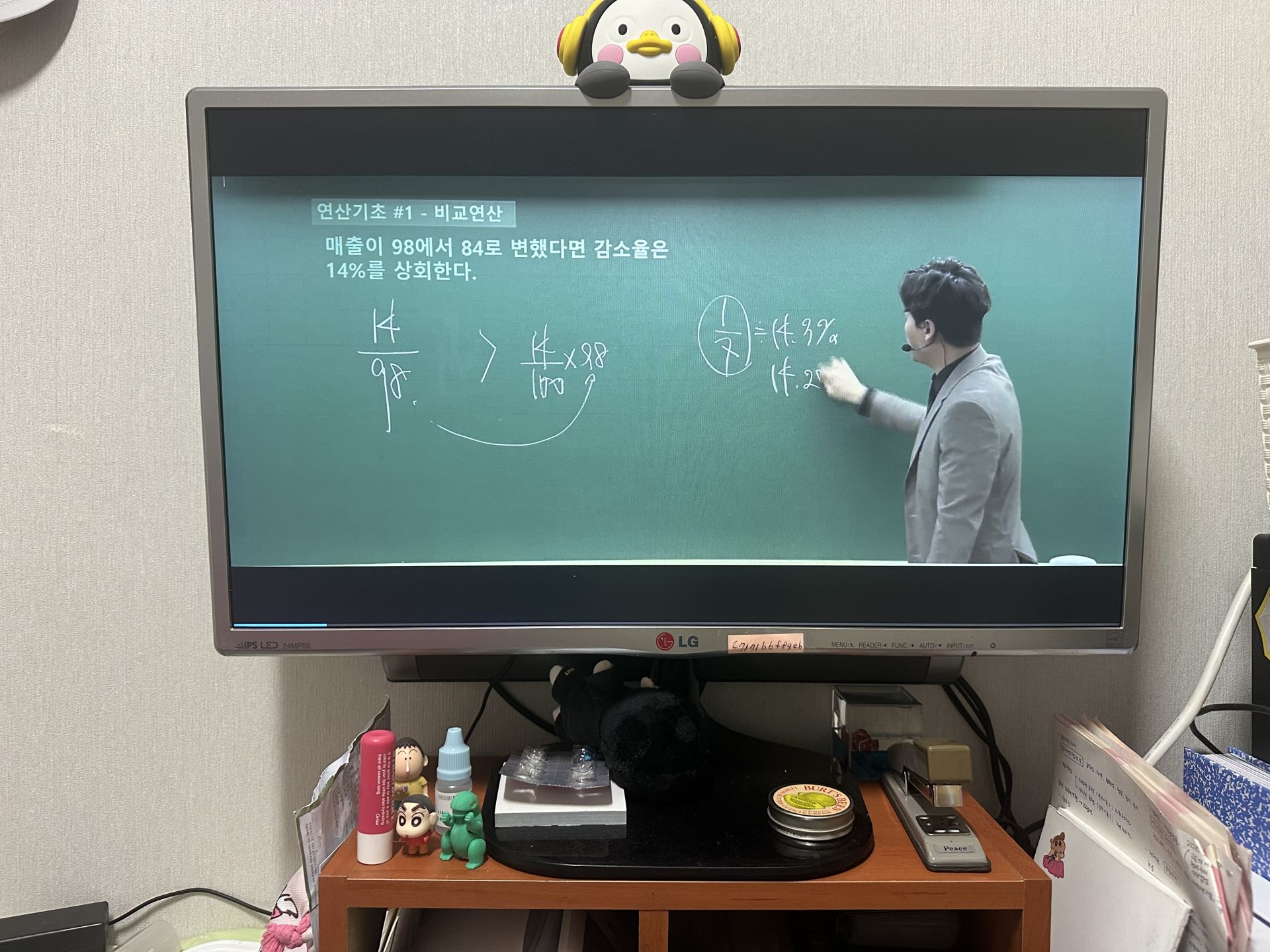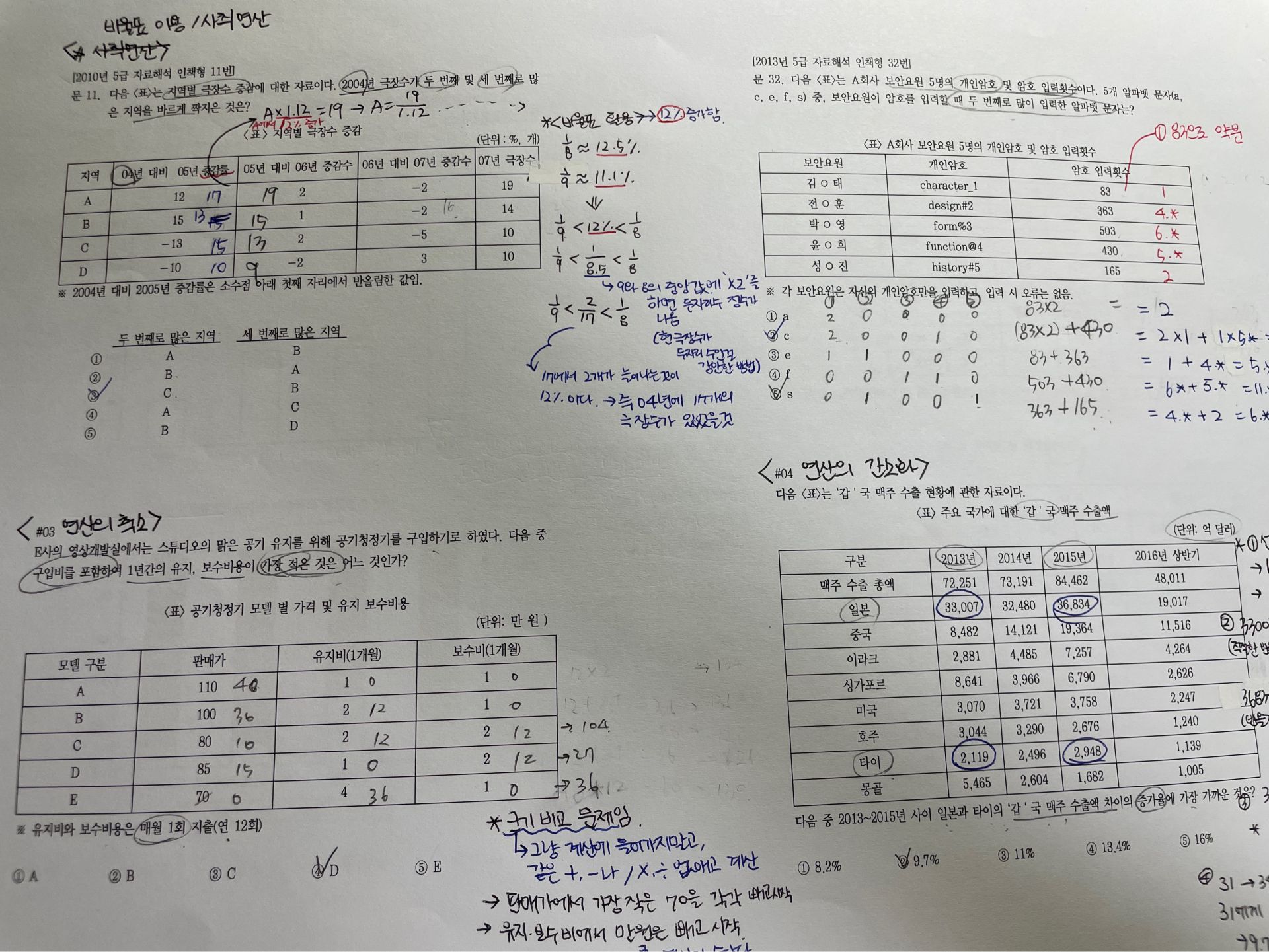 특히 비율표 암기를 많이 강조하시는데 외워서 문제에 적용하니 복잡하게 계산하지 않고 간단하게 풀 수 있는 문제들이 많았습니다.