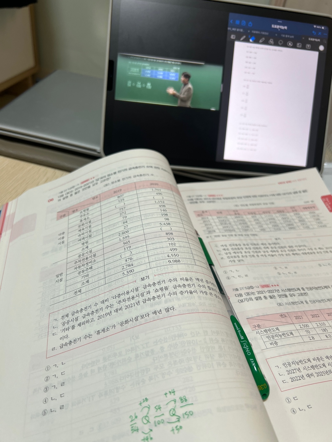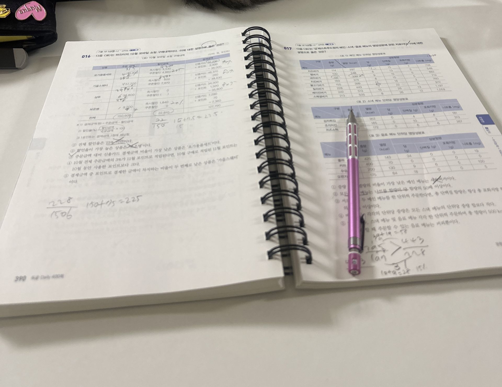 교재 구성도 실전 대비에 좋았습니다. 유형별로 포인트가 명확해서 복습할 때 “내가 어디서 막히는지” 체크가 쉽고, 강의 듣고 바로 교재로 반복하면 풀이 속도가 조금씩 올라가는 게 체감됩니다. 아직은 어렵게 느껴지는 부분도 있지만, 이번 주에 배운 유형들은 오답노트로 패턴 정리 → 같은 유형 2~3회 반복 → 시간 재면서 재풀이 방식으로 꾸준히 늘려갈 계획입니다.