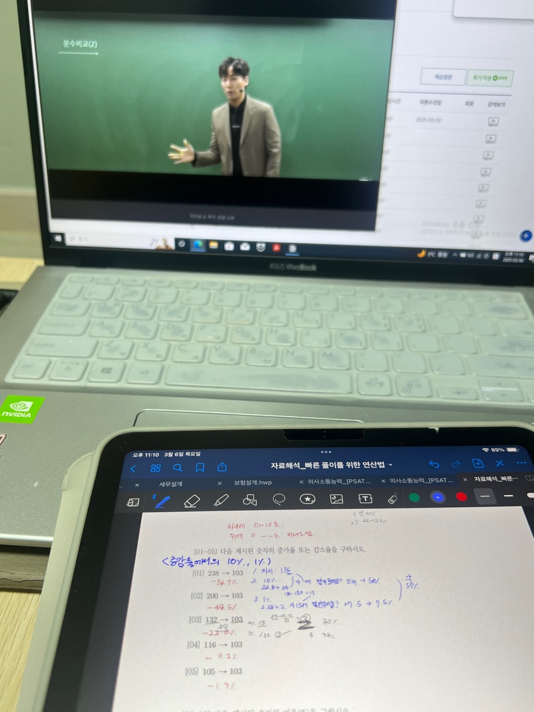 2주차에는 박수웅 선생님의 자료해석 빠른 계산 접근법을 주로 수강했는데 정말 도움 많이 받았어요.
