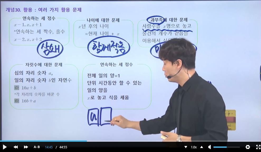 수리 응용 문제를 개념별로 강의가 정리를 잘 되어 있어서 좋았습니다 !!