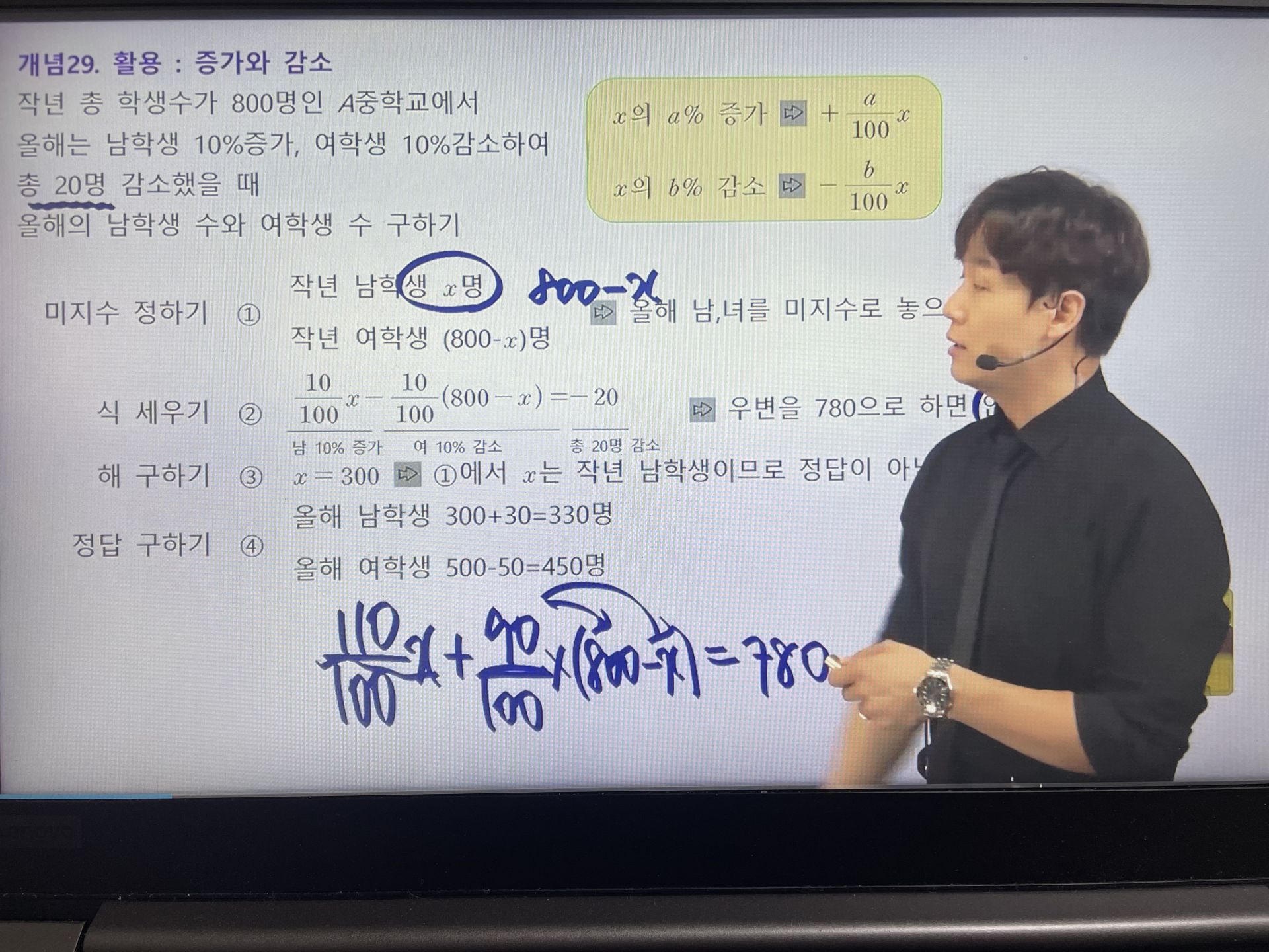 다시 풀어보라는 문제는 일시정지 하고 다시 풀어보았고 선생님 풀이법과 비교해보았습니다.