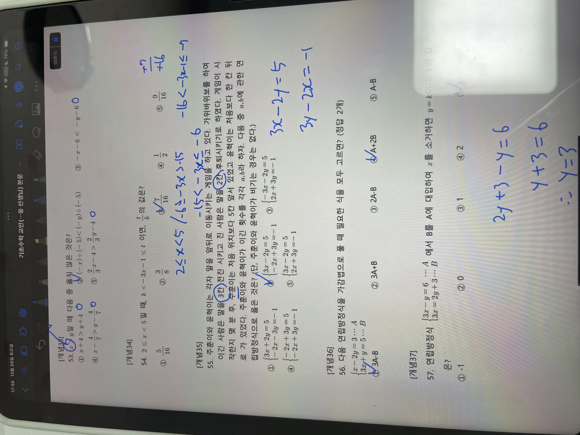 선생님이 손으로 쓱쓱 정리하는 풀이를 보면서 내가 괜히 어렵게 돌아가고 있었구나 하는 깨달음도 있었다.