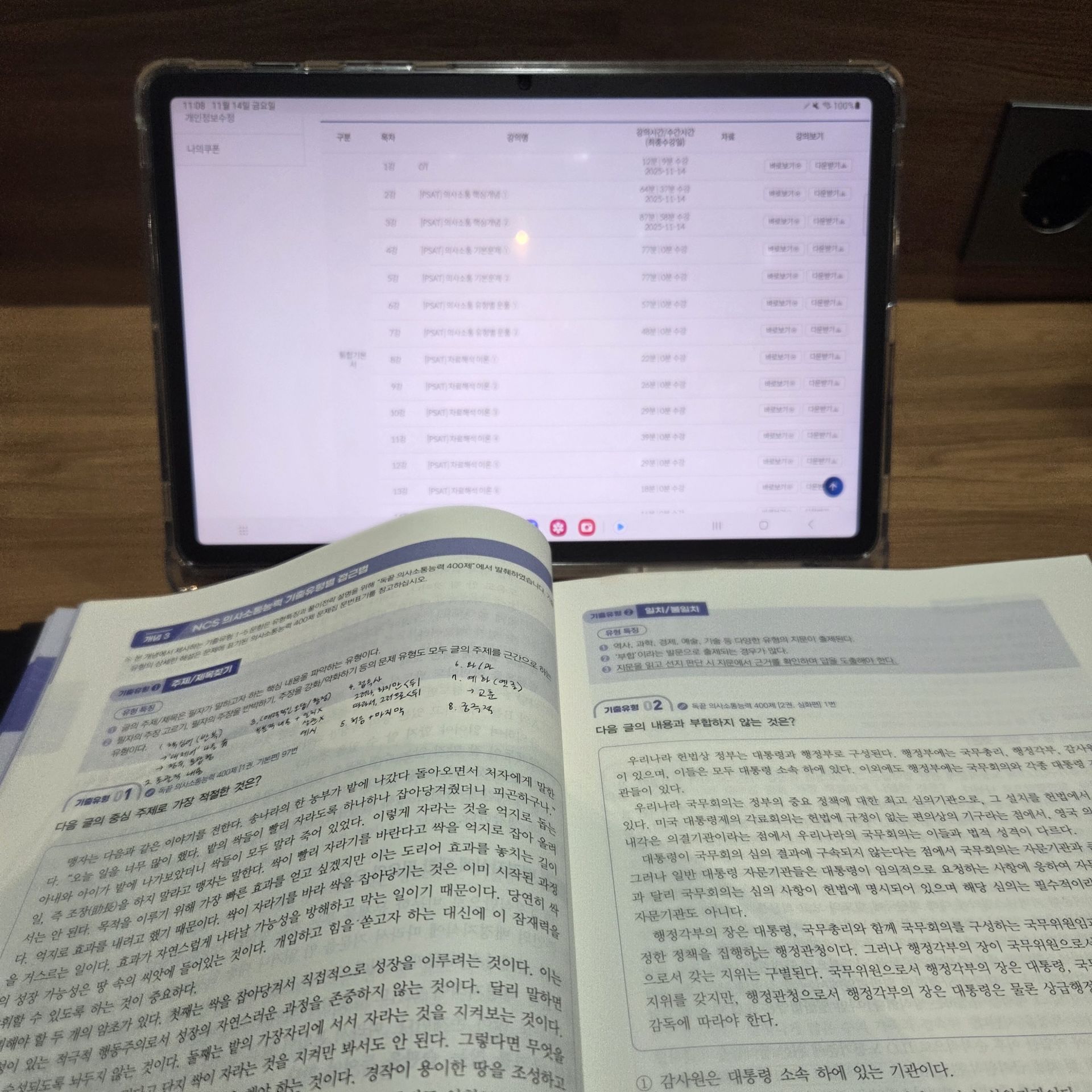 교재 구성도 실전 대비에 좋았습니다. 유형별로 포인트가 명확해서 복습할 때 “내가 어디서 막히는지” 체크가 쉽고, 강의 듣고 바로 교재로 반복하면 풀이 속도가 조금씩 올라가는 게 체감됩니다. 아직은 어렵게 느껴지는 부분도 있지만, 이번 주에 배운 유형들은 오답노트로 패턴 정리 → 같은 유형 2~3회 반복 → 시간 재면서 재풀이 방식으로 꾸준히 늘려갈 계획입니다.