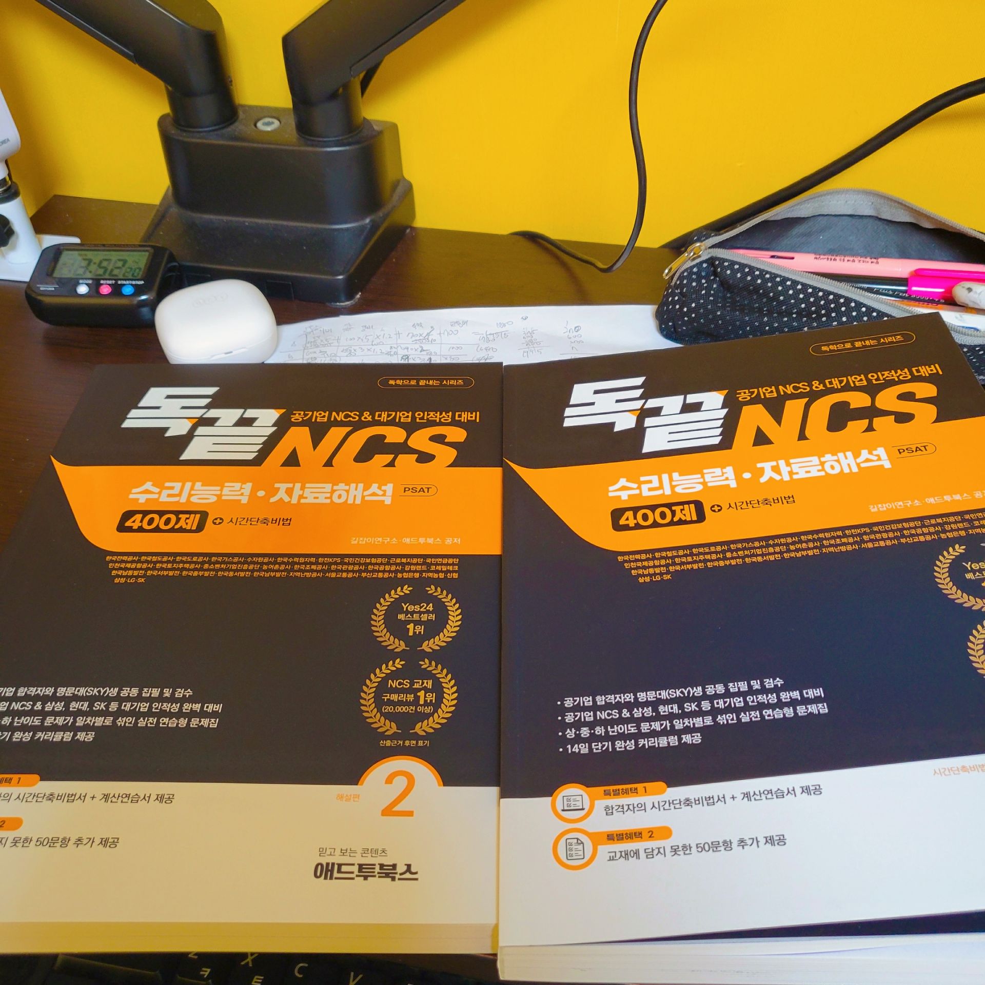 독끝 NCS 문제해결능력+자원관리능력을 사용해보고 좋아서 수리능력, 자료해석도 풀어봤다. 수많은 공겹 취준생들에게 혼자 독학하기에 정말 좋은 교재고 인강이라고하는데, 왜 그런지 지난번 문제해결능력+자원관리때도 느꼈지만 이번 수리능력, 자료해석 교재를 보면서도 또 느꼈다. 공기업 준비하는 독학러들에게 진짜 추천할만한 교재랑 인강이라고 생각된다. 공기업, PSAT 합격자의 NCS 문제풀이 시간단축 팁을 전체 문항에서 배울 수 있어 빠르게 답을 찾는 연습이 가능한 교재였다.