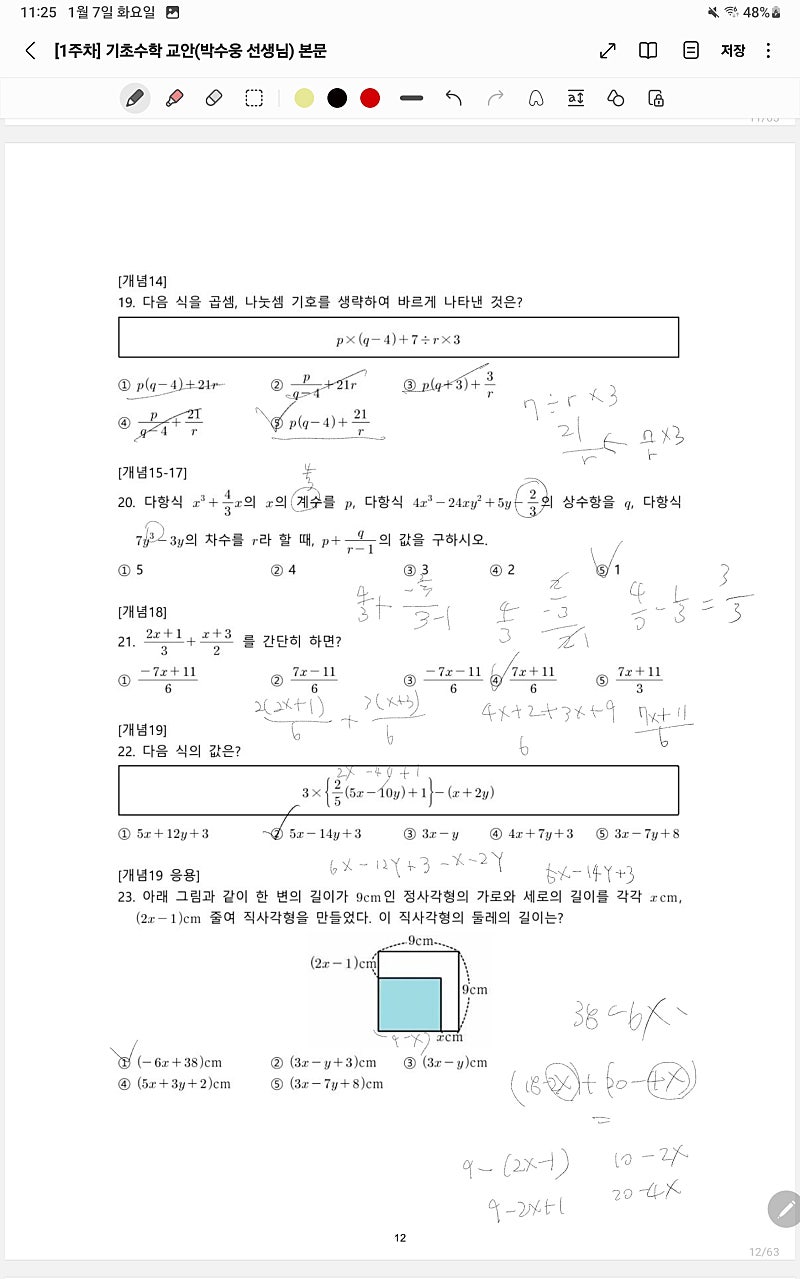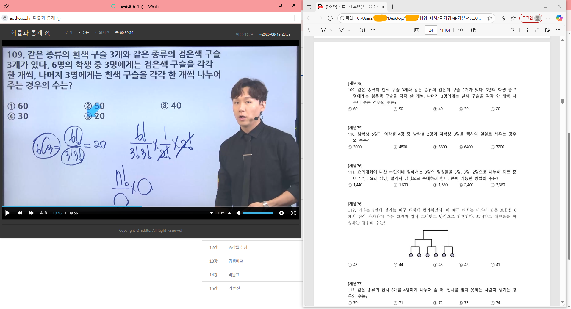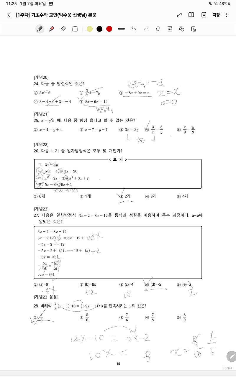 다시 풀어보라는 문제는 일시정지 하고 다시 풀어보았고 선생님 풀이법과 비교해보았습니다.