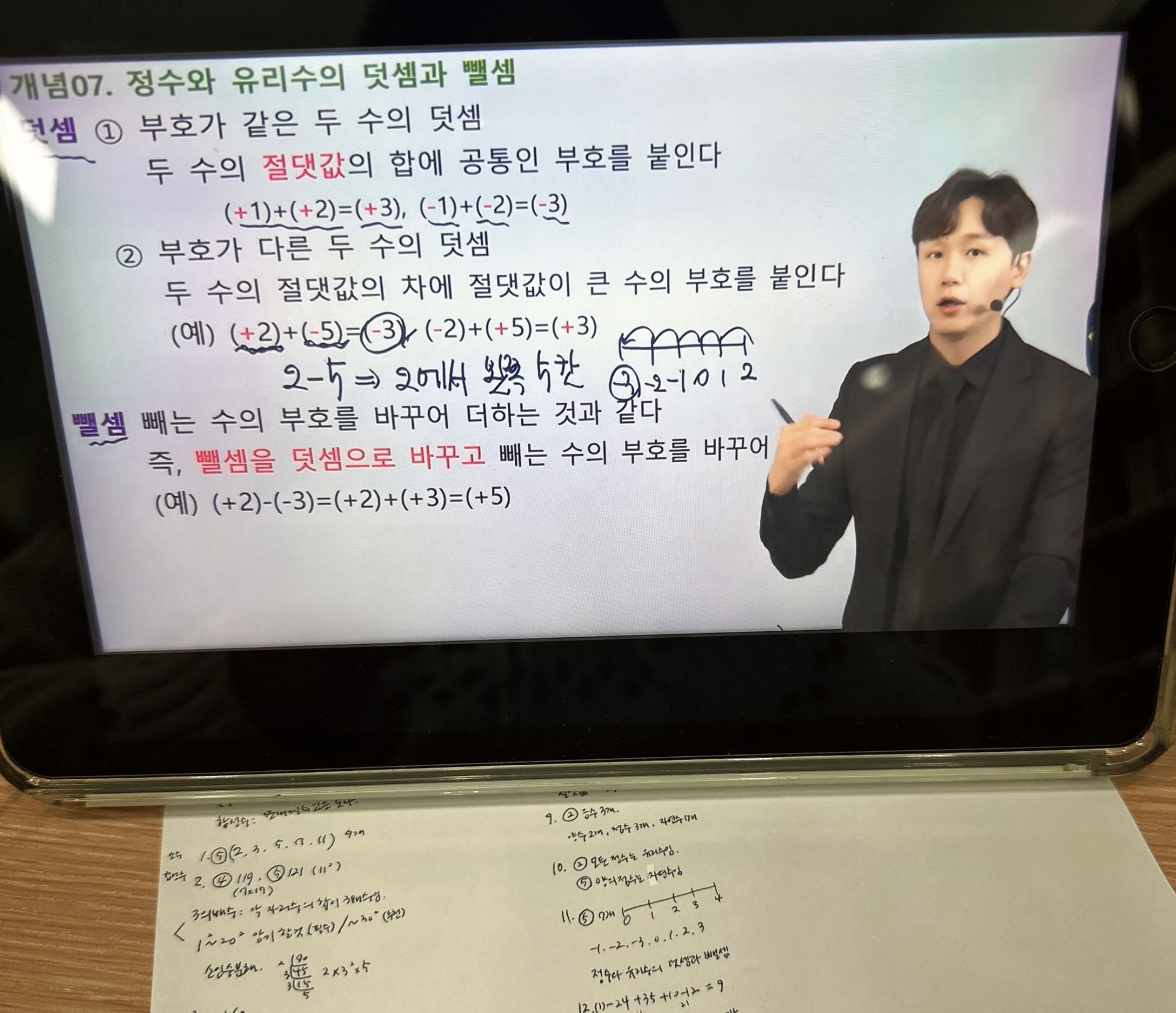 중학교 1학년 수학 기본부터 차근차근 알려주시는 것 같아요. 저는 1.2나 1.3배속으로 들었습니다.