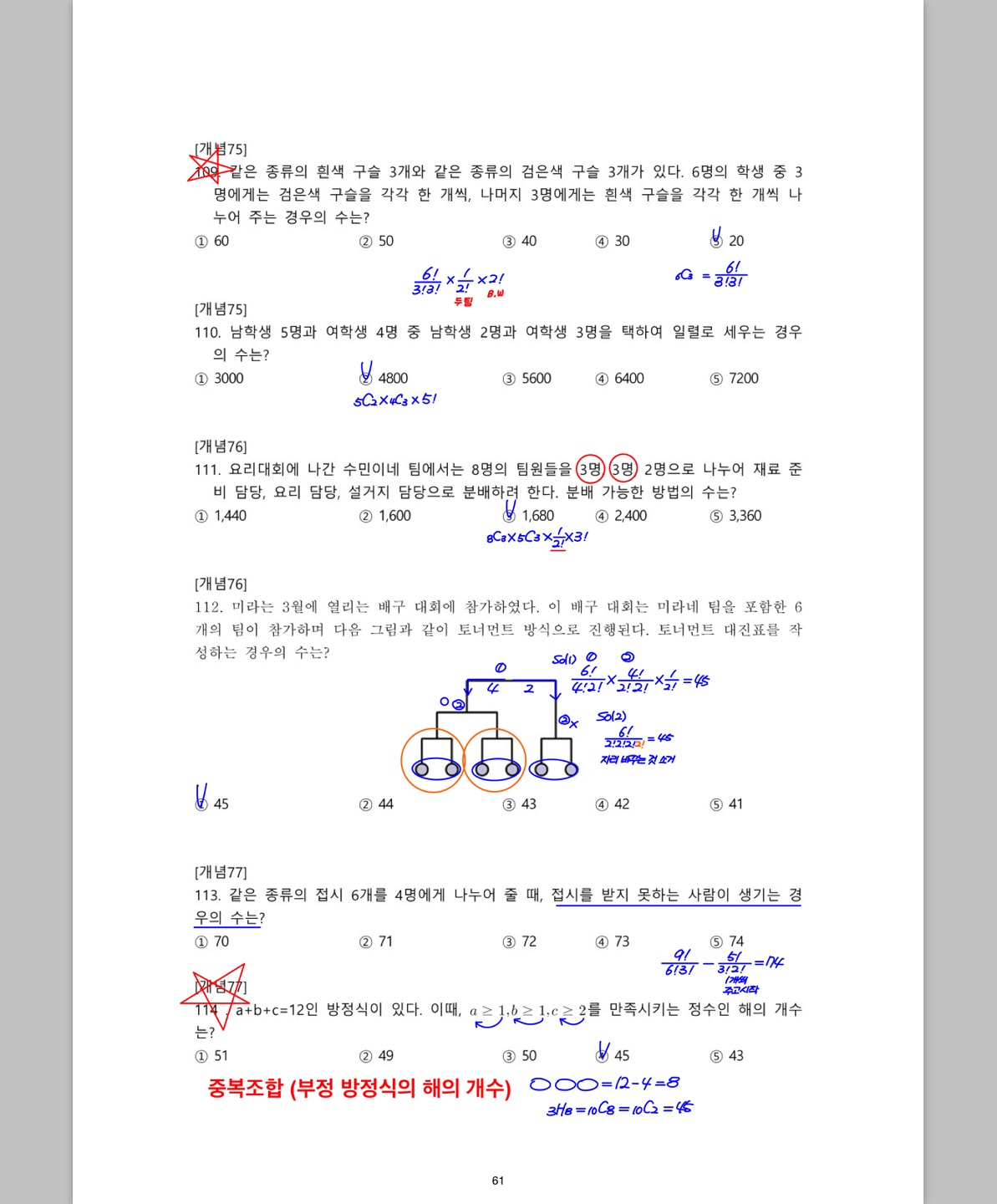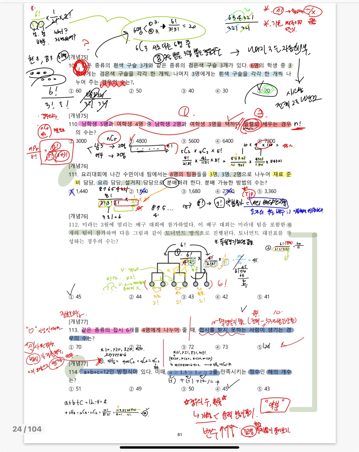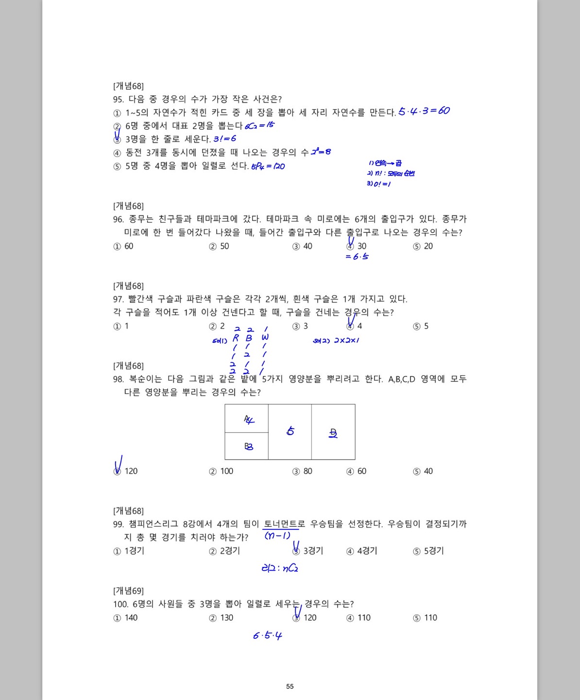 그리고 확률 파트 특히 조건부 확률 문제는 보면 바로 넘기는 문제였는데