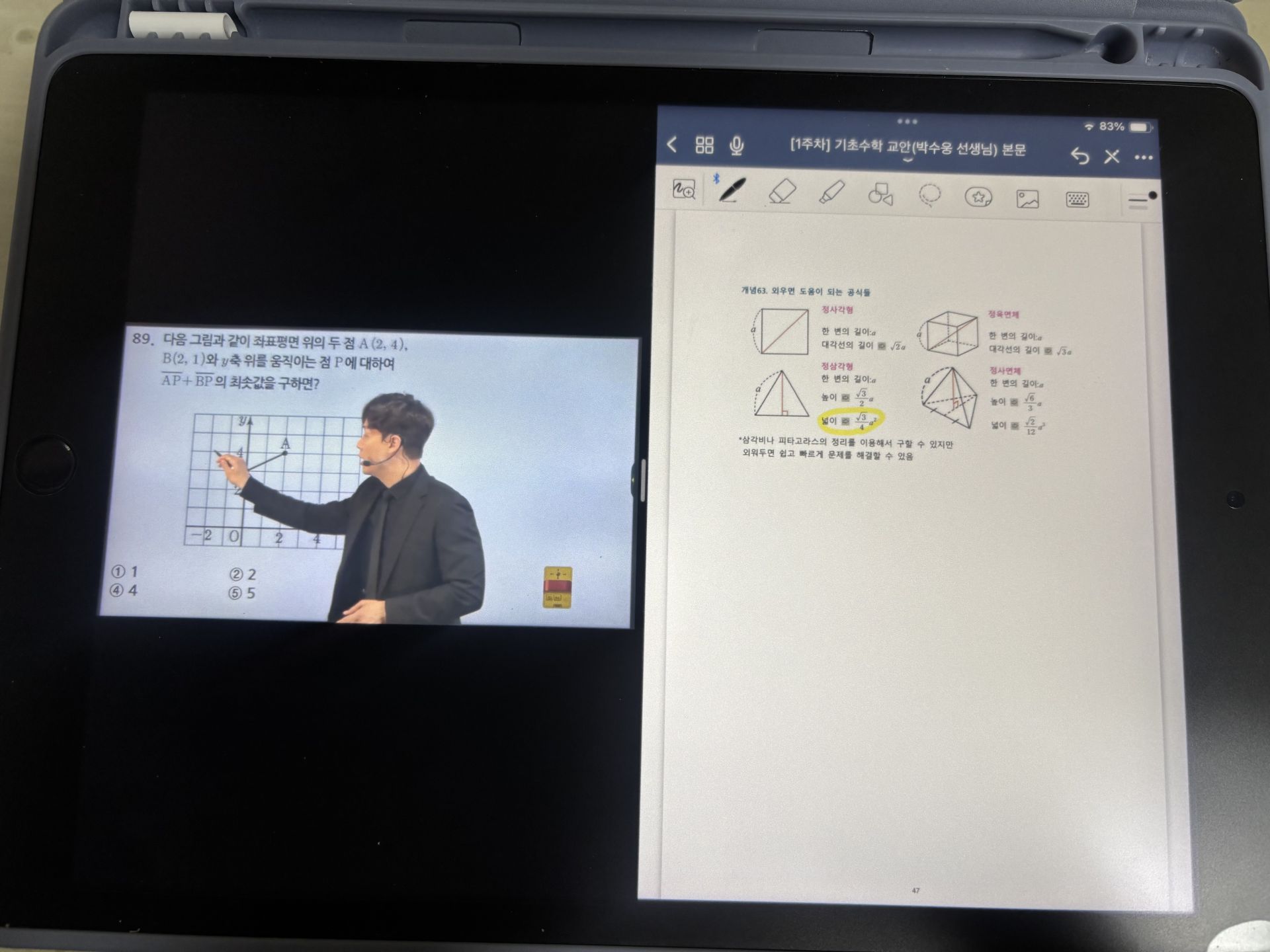 다시 풀어보라는 문제는 일시정지 하고 다시 풀어보았고 선생님 풀이법과 비교해보았습니다.