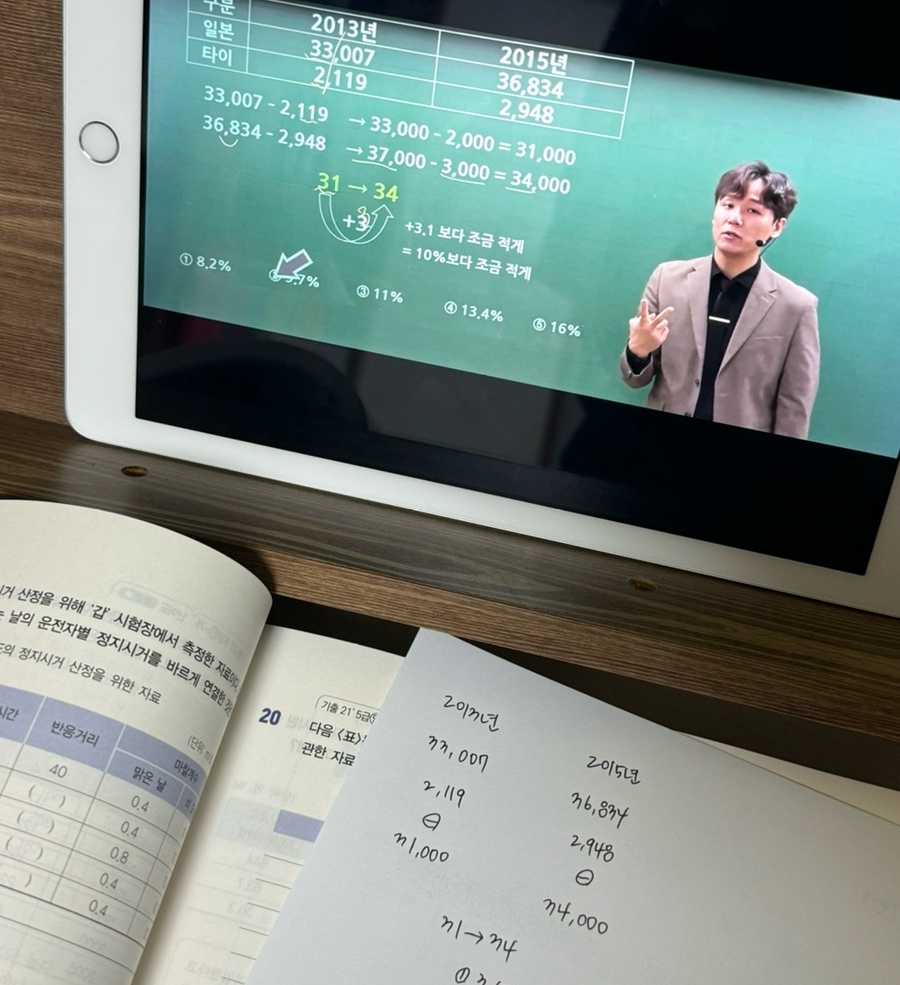 자료해석은 혼자 풀 때는 가늠도 안가던 분수의 크기비교라던지 비중문제라던지 정말 쉽게 알려주셔서 정말 많이 도움 되었습니다. 감사합니다