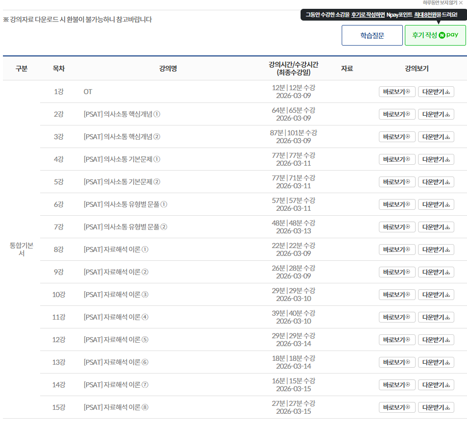 교재 구성도 실전 대비에 좋았습니다. 유형별로 포인트가 명확해서 복습할 때 “내가 어디서 막히는지” 체크가 쉽고, 강의 듣고 바로 교재로 반복하면 풀이 속도가 조금씩 올라가는 게 체감됩니다. 아직은 어렵게 느껴지는 부분도 있지만, 이번 주에 배운 유형들은 오답노트로 패턴 정리 → 같은 유형 2~3회 반복 → 시간 재면서 재풀이 방식으로 꾸준히 늘려갈 계획입니다.