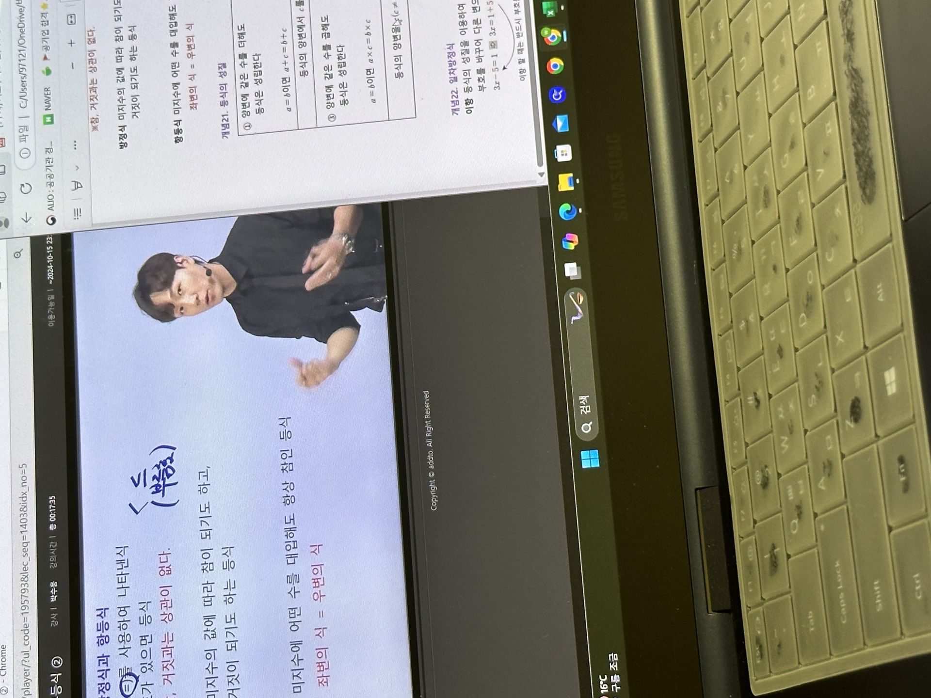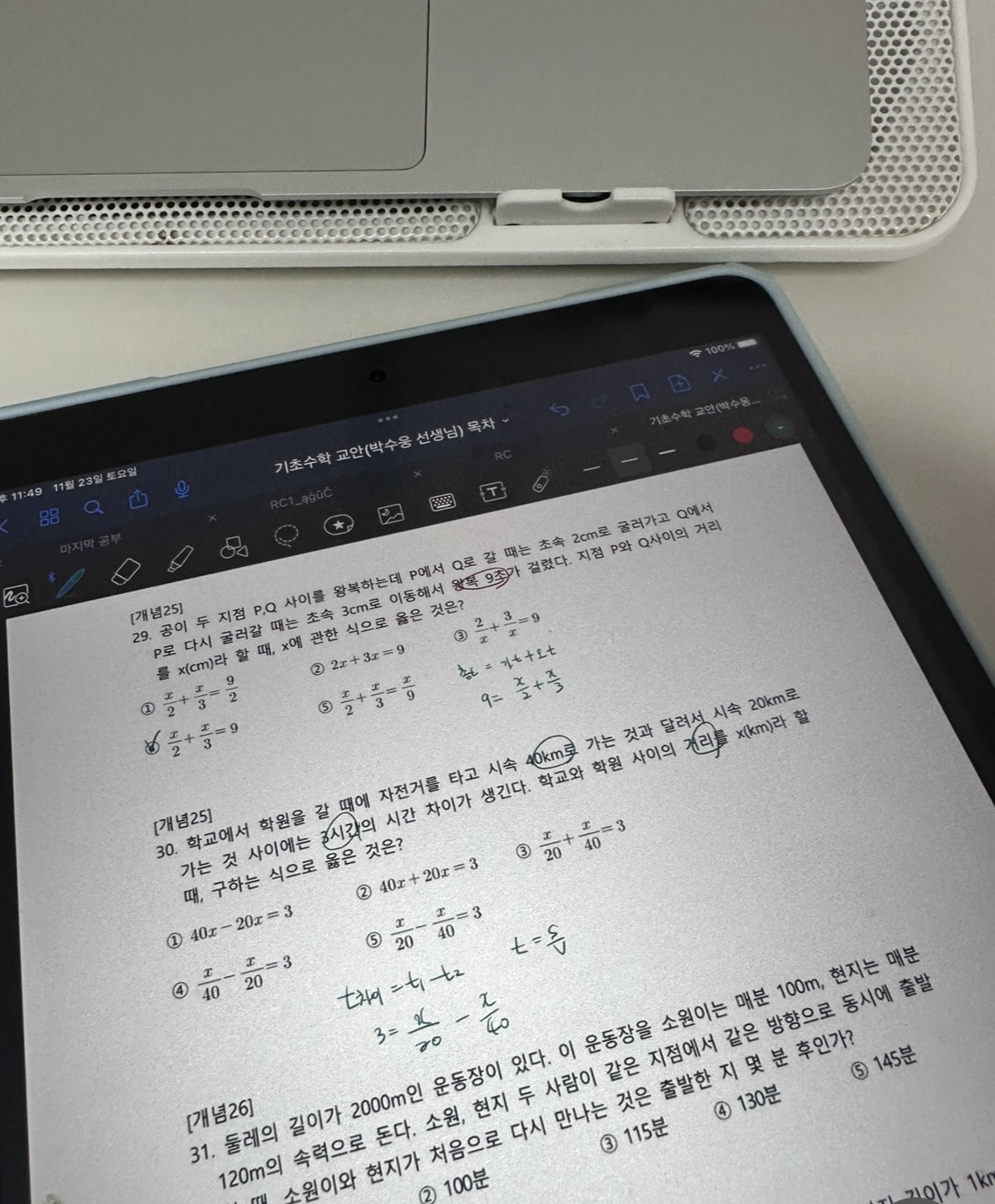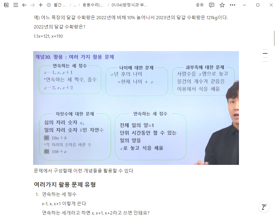다시 풀어보라는 문제는 일시정지 하고 다시 풀어보았고 선생님 풀이법과 비교해보았습니다.