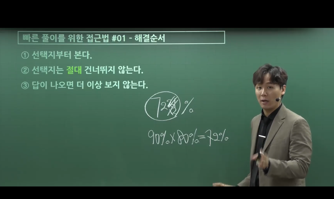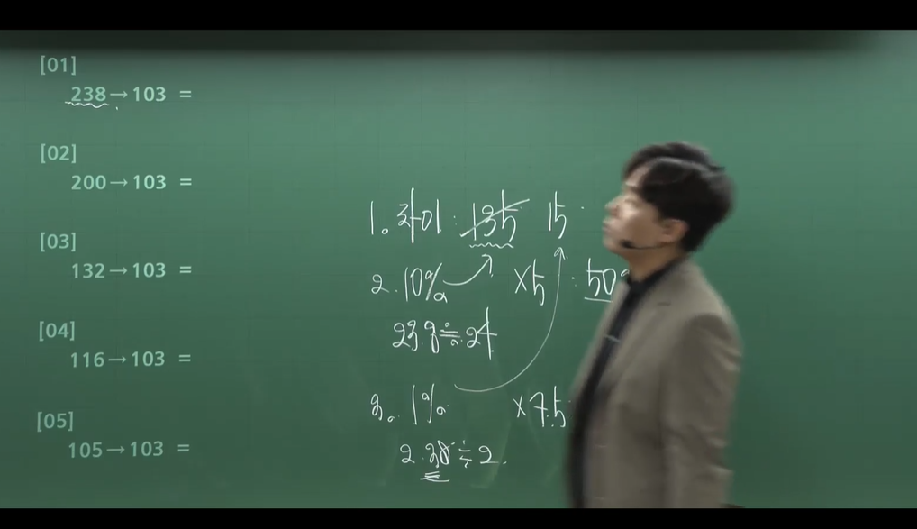 수웅쌤 강의의 가장 큰 장점은 첫째, 실전적인 시간 단축 비법을 전수해주신다는 것입니다. 정석적인 방정식을 써서 길게 계산하는 방식이 아니라 대입법, 가감법, ⭐️몰아주기, 간소화⭐️등 강의를 들은 사람만 아는 꿀팁들을 가르쳐주십니다. 특히 몰아주기와 간소화 기법을 체화하면 복잡한 수치도 암산으로 처리할 수 있을 만큼 계산이 단순해집니다.